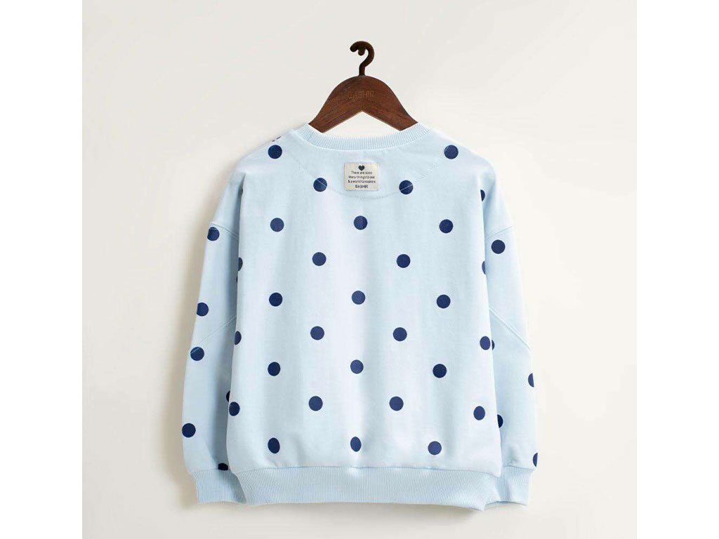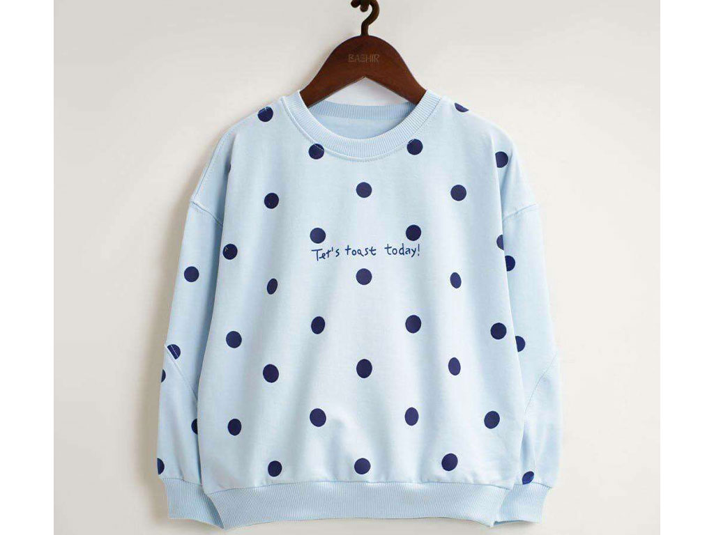 بلوز آستین بلند دورس رنگ آبی طرح خال خال بشیر Bashir