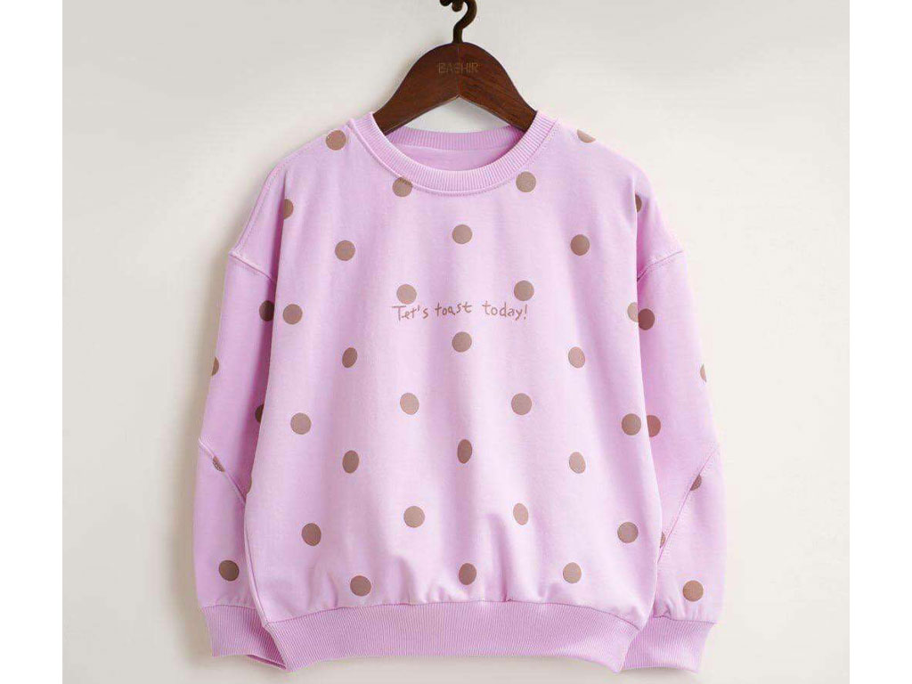 بلوز آستین بلند دورس رنگ صورتی طرح خال خال بشیر Bashir