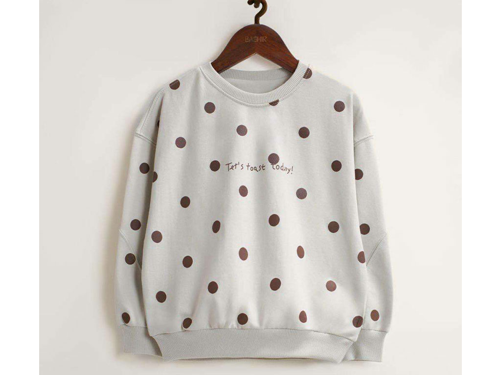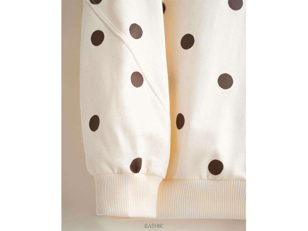 بلوز آستین بلند دورس رنگ خاکی طرح خال خال بشیر Bashir