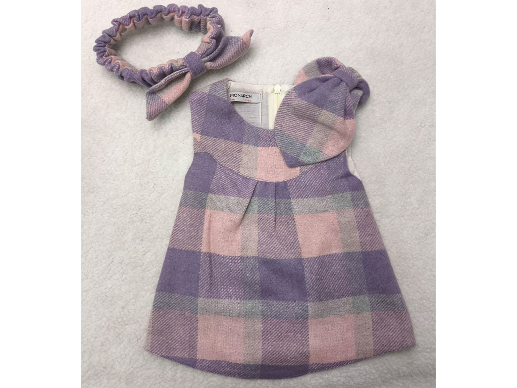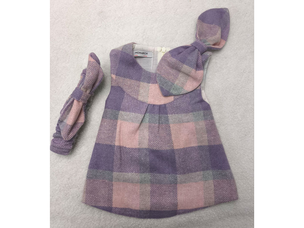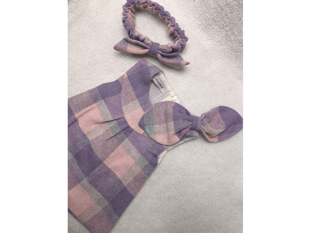 سارافون پاپیون صورتی یاسی چهارخانه هدبند دار