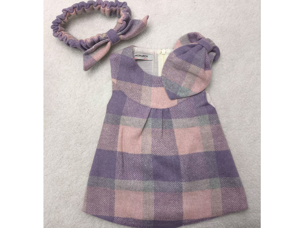 سارافون پاپیون صورتی یاسی چهرخانه هدبند دار، سارافون نوزادی دخترانه که به رنگ صورتی یاسی بوده و دارای طرح چهارخانه میباشد. طرح چهارخانه این لباس حالت نوستالژیک داشته و اکثر مادران، لباسی با این طرح در بچه گی خود داشته و می توانند با خرید آن برای کودک دلبند خود ایام کودکی خود را تداعی نمایند. سارافون در جلو در قسمت سرشانه دارای یک عدد پاپیون برجسته بوده که موجب زیبایی این سارافون نوزادی شده است. و این سارافون دارای آستر بوده و جنس آن نیز 100 درصد نخ پشمی است و برای سیسمونی کودک دلبند شما مناسب می باشد. سارافون دخترانه در پشت با یک زیپ باز و بسته می شود که موجب سهولت در تعویض لباس کودک دلبندتان خواهد شد.