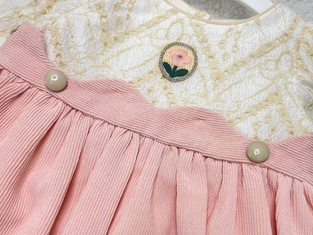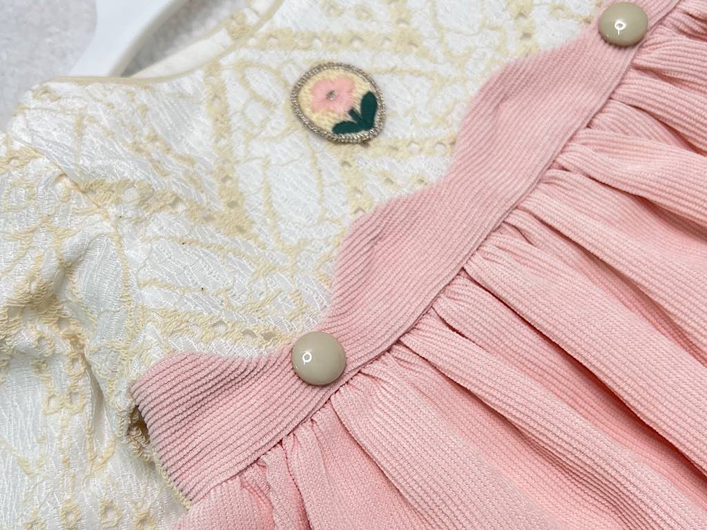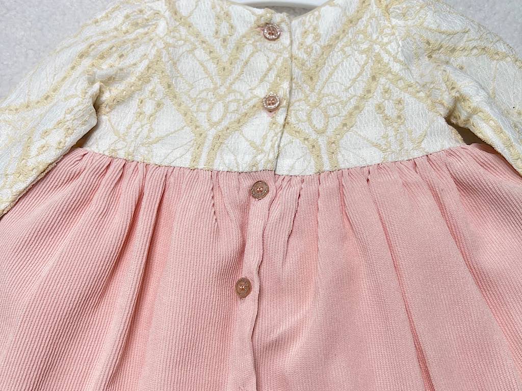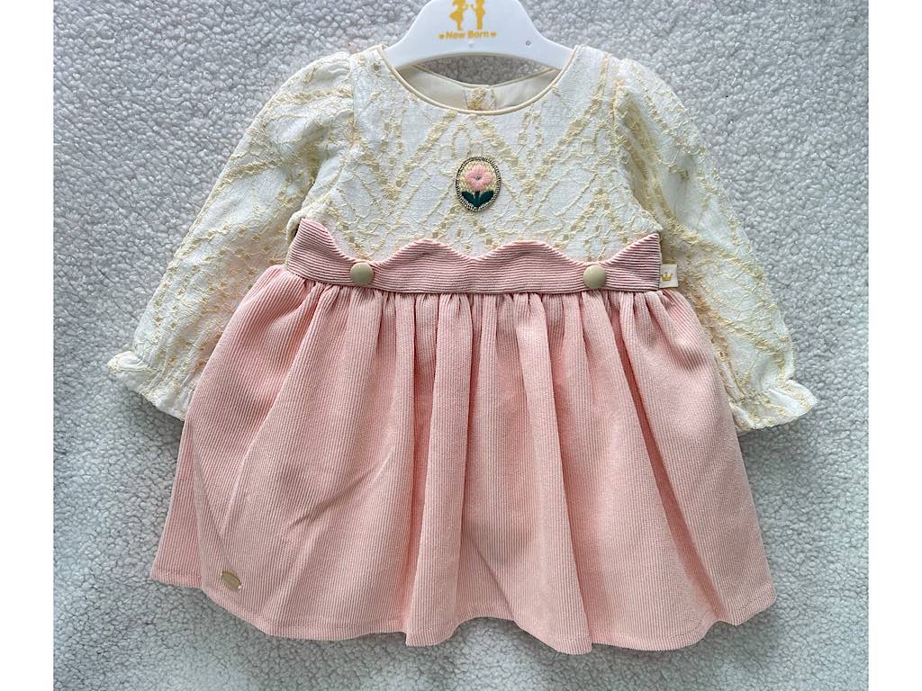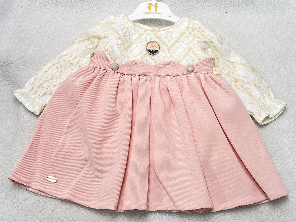 پیراهن دخترانه مخمل صورتی بالا تنه دانتل گلدوزری شده نیو برن new born
