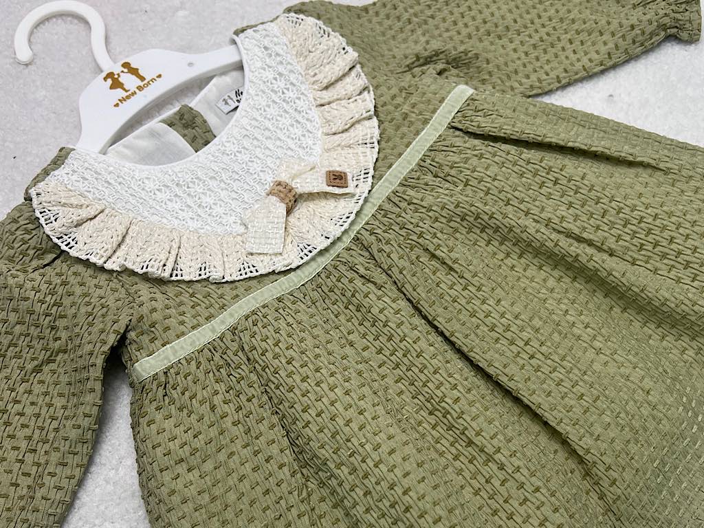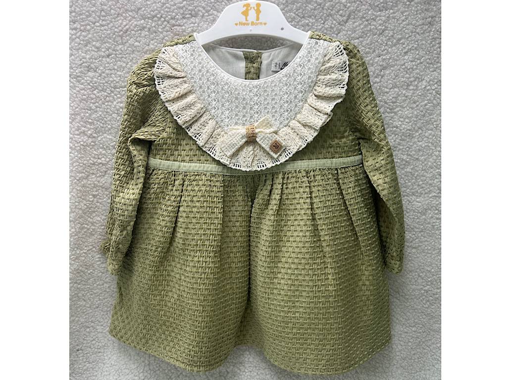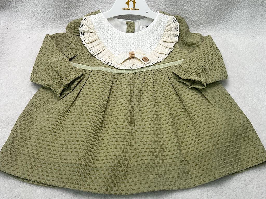 پیراهن دخترانه جلو سینه گیپور پاپیون دار نیوبرن New Born
