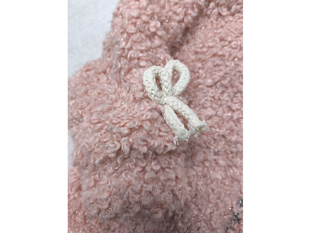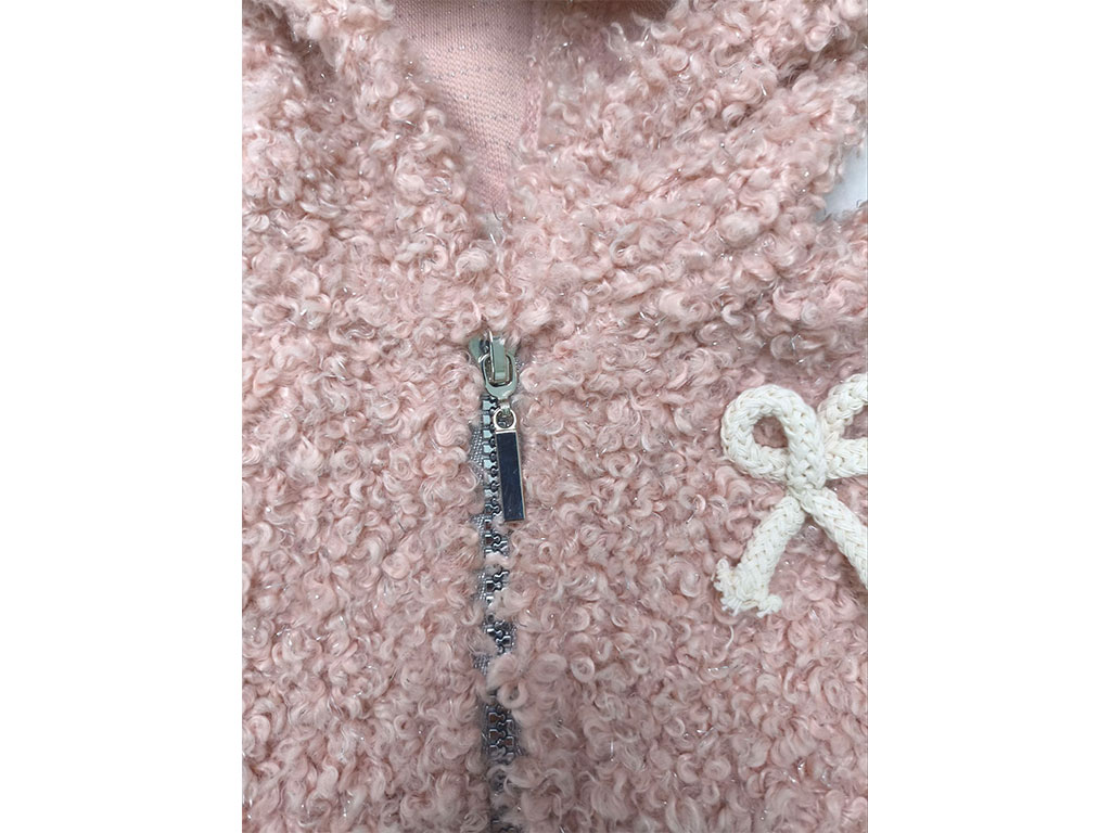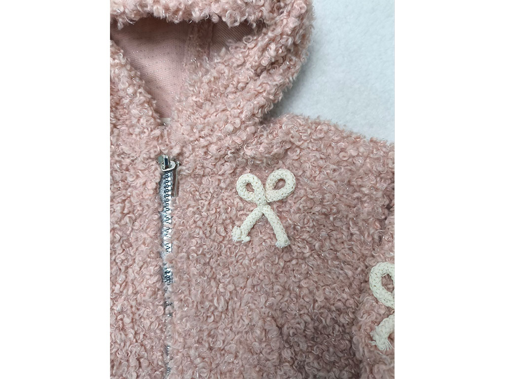 سوئیشرت پولیش لمه صورتی رنگ دخترانه زیپ دار طرح پاپیون