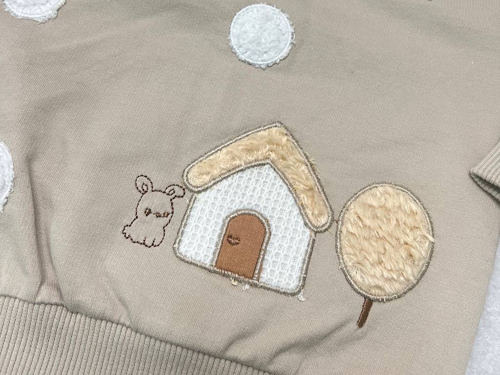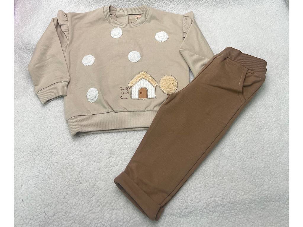 ست بلوز و شلوار گلدوزی شده نسکافه ای طرح قارچ و کلبه vira