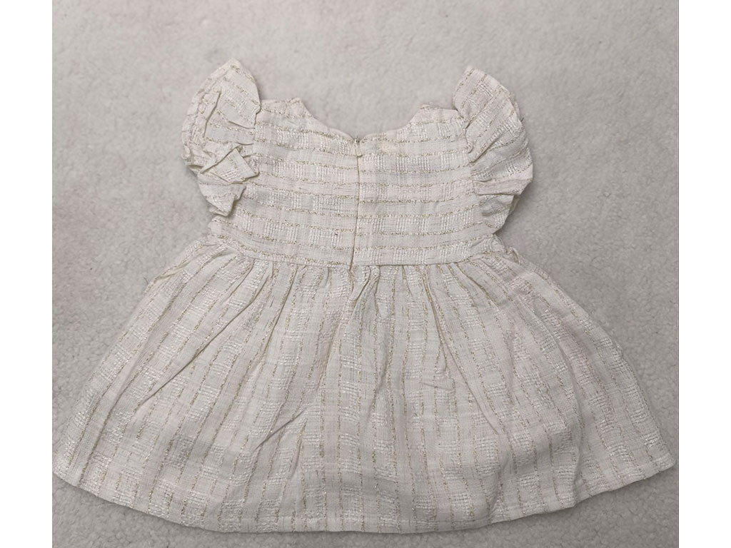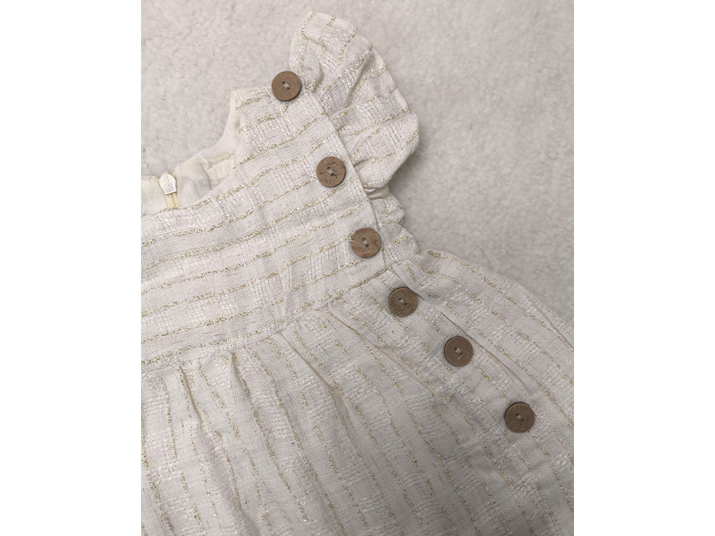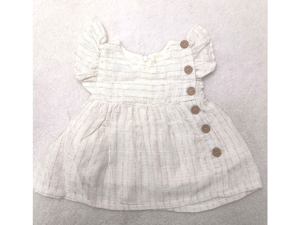 سارافون دخترانه رنگ شیری طرح نقلی راه دار بغل دکمه