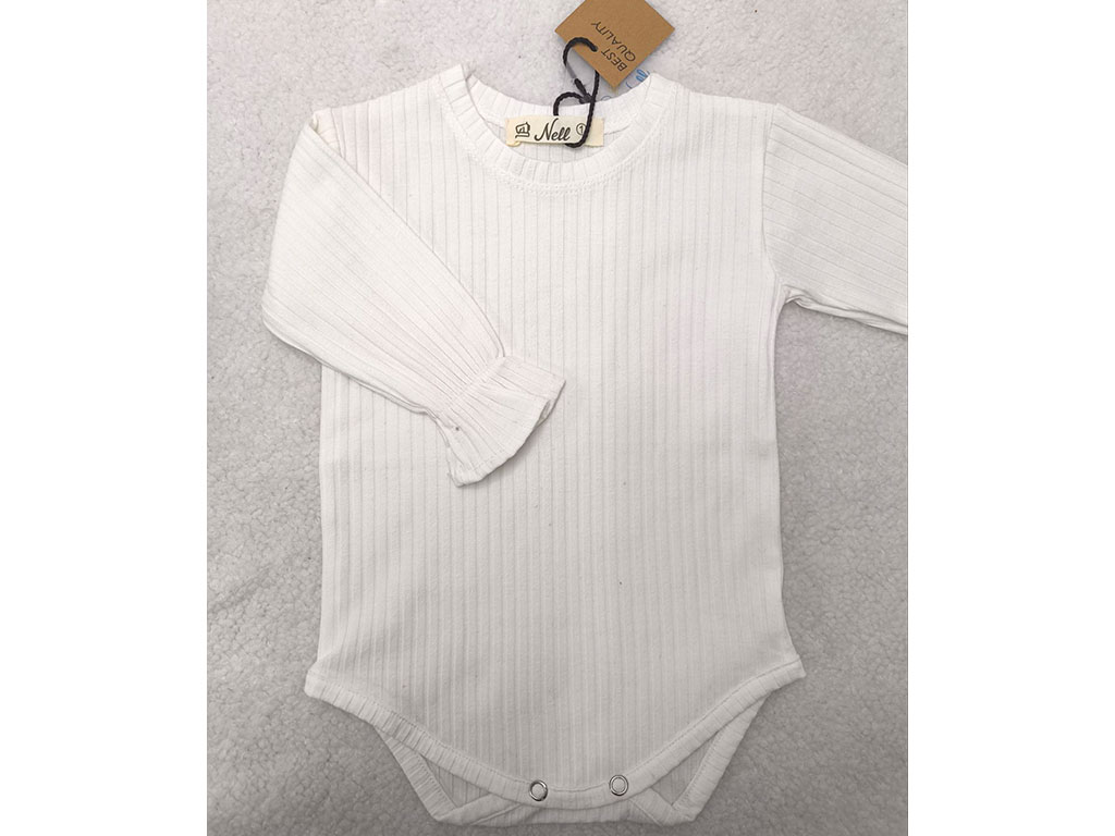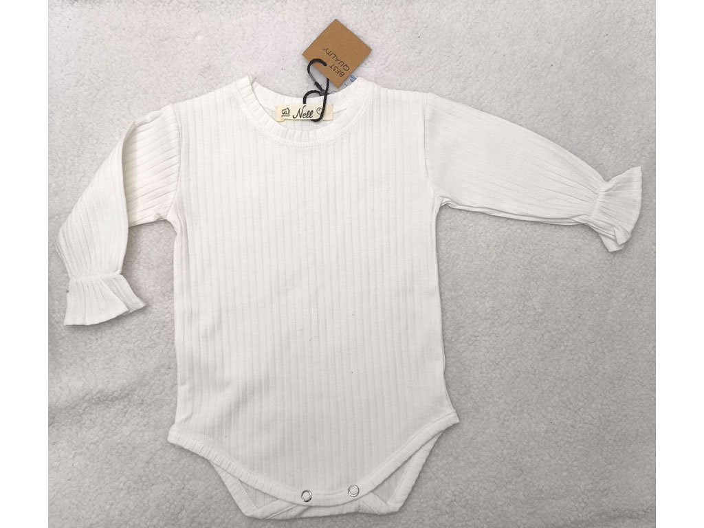 بادی آستین دار دخترانه مدل یقه گرد سفید رنگ کبریتی