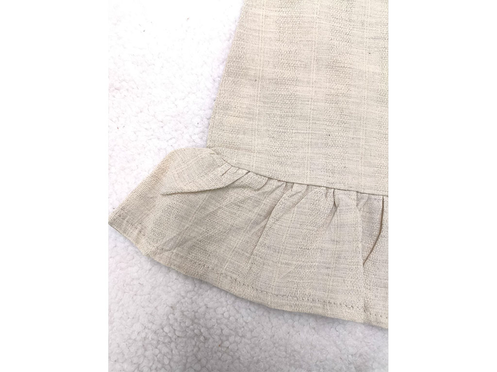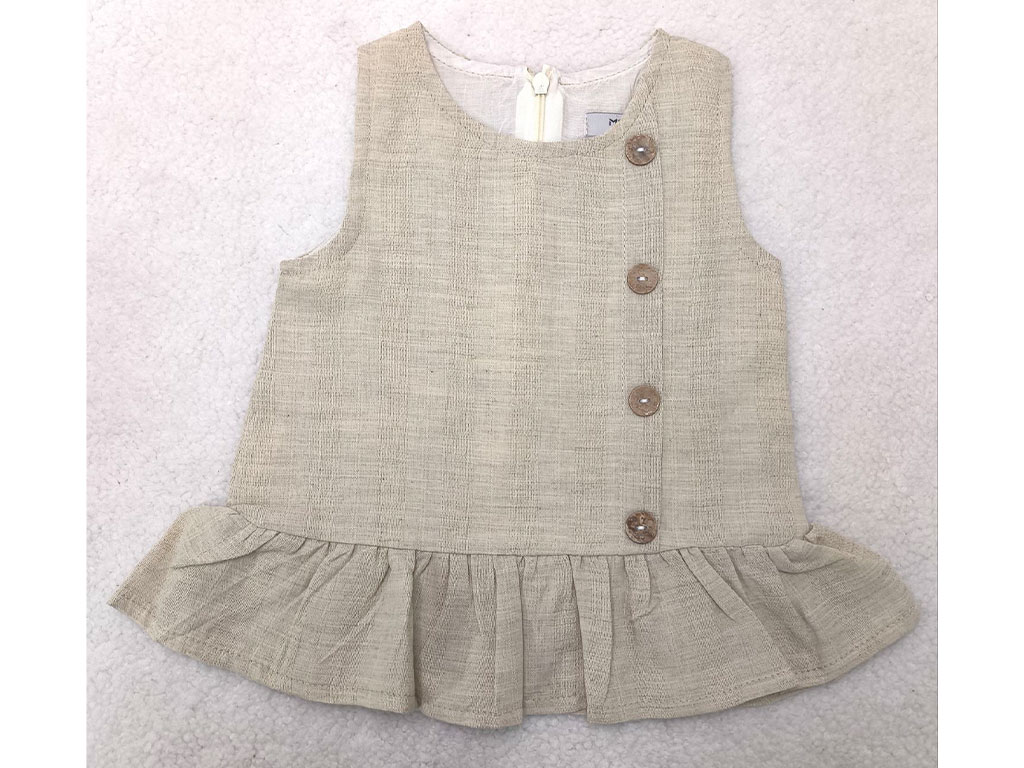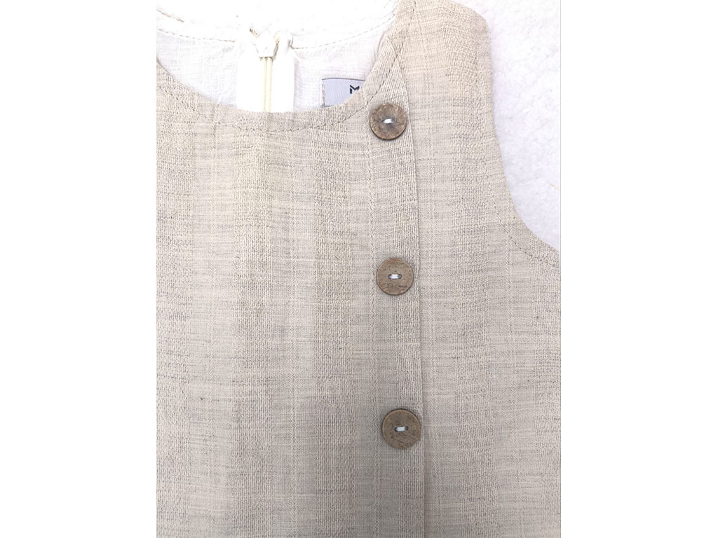 سارافون دخترانه رنگ نسکافه ای طرح نقلی بغل دکمه چین دار