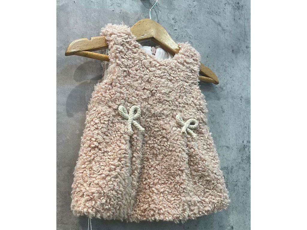سارافون پولیش لمه صورتی رنگ دخترانه زیپ دار طرح پاپیون ،سارافون نوزادی دخترانه صورتی که طرح پاپیون طناب شده بر روی لباس کار شده است و داخل کرکی و گرم می باشد.پشت لباس زیپ قرار گرفته تا روند تعویض لباس کودک به راحتی صورت گیرد و مناسب فصل پاییز و زمستان می باشد .برای شستشوی این لباس بهتر است آن را با دست و با آب با دمای 30 درجه بشویید.