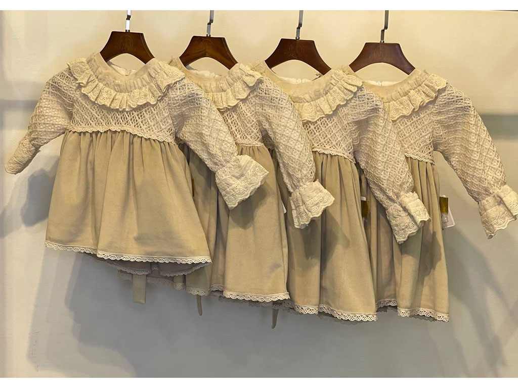 سارافون نوزادی رنگ کرم دخترانه مخمل بالا گیپور