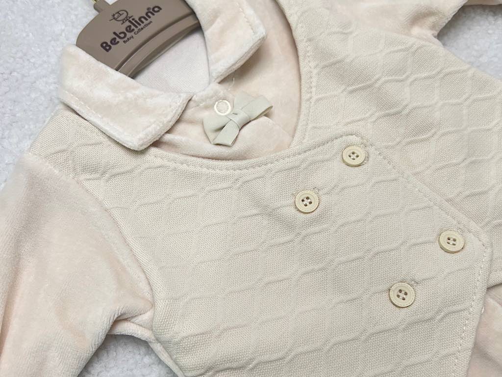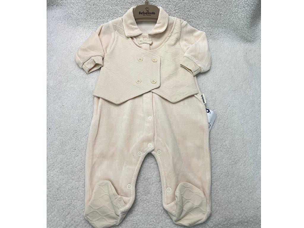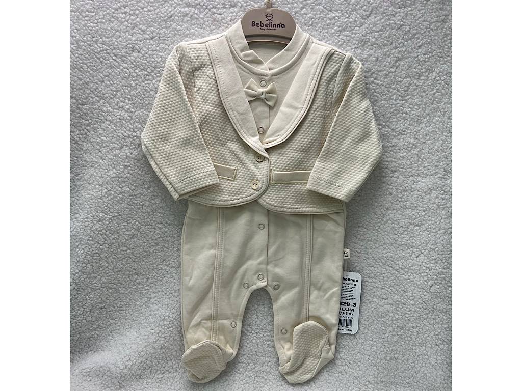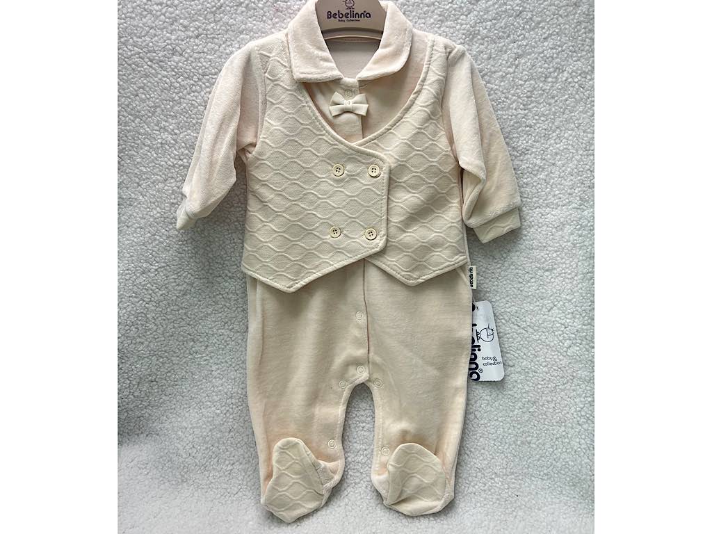 سرهمی جوراب و جلیقه دار نوزادی پسرانه کرم رنگ بب لینا BEBELINNA