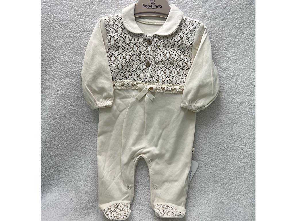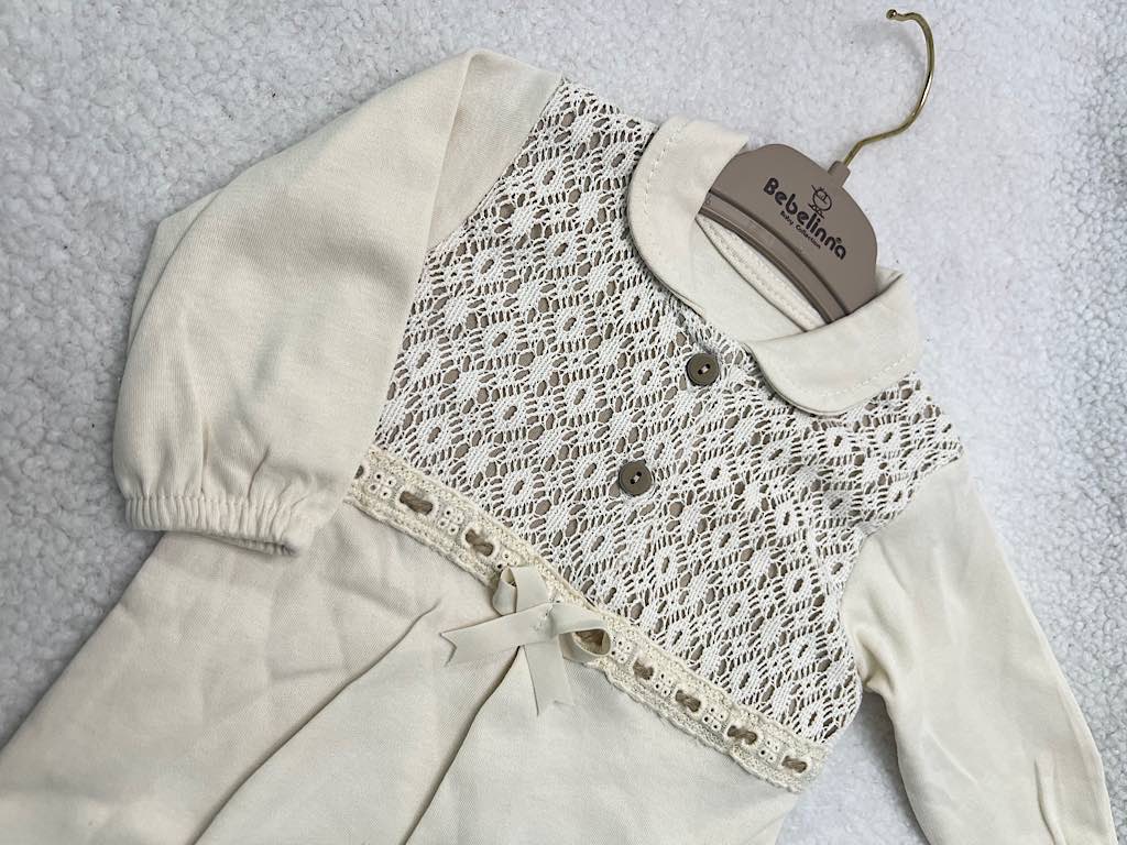 سرهمی جورابدار جلو سینه قلاب دوزی شده نوزادی دخترانه کرم رنگ بب لینا BEBELINNA