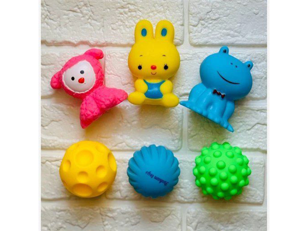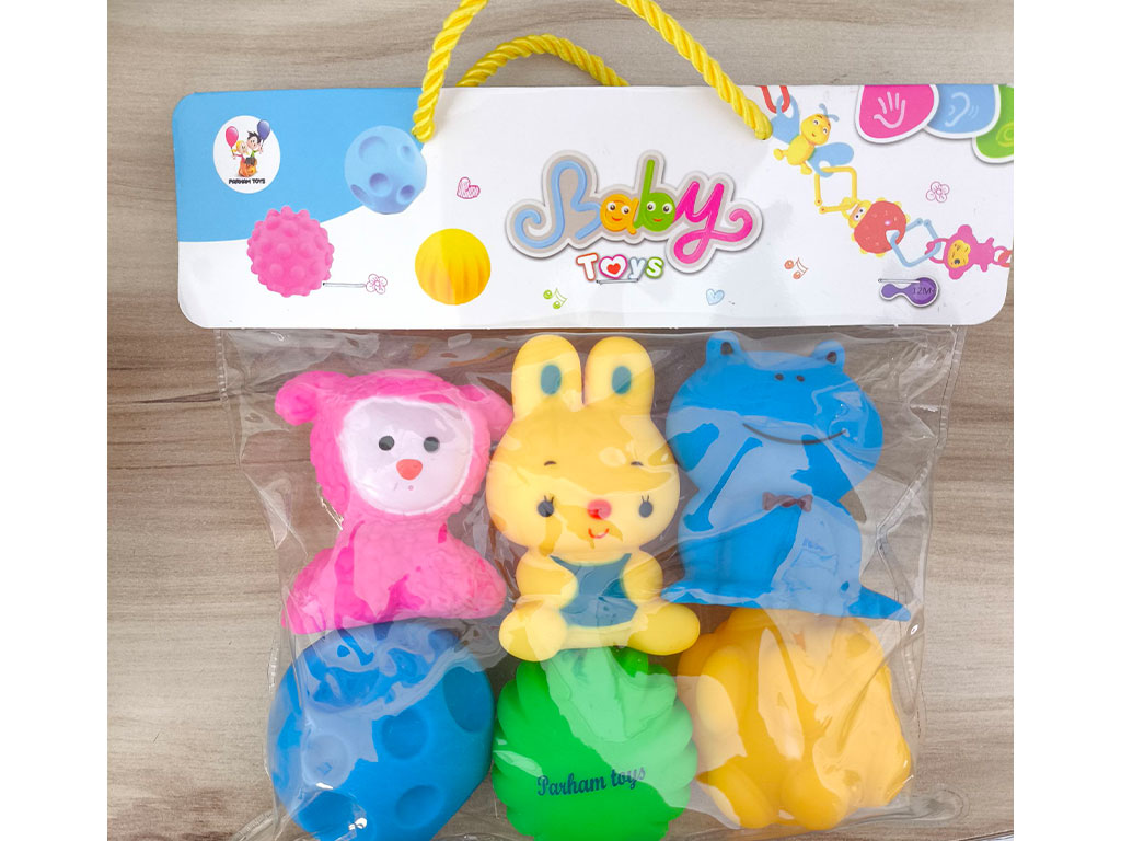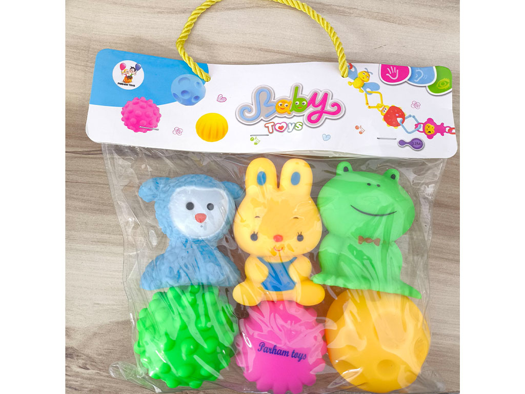 - شامل 3 اسباب بازی توپ حسی و 3 عدد پوپت حیوانات