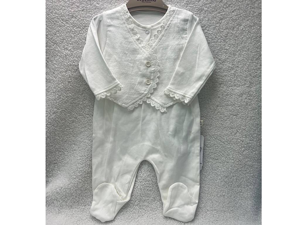 سرهمی جورابدار نوزادی دخترانه شیری رنگ بب لینا BEBELINNA