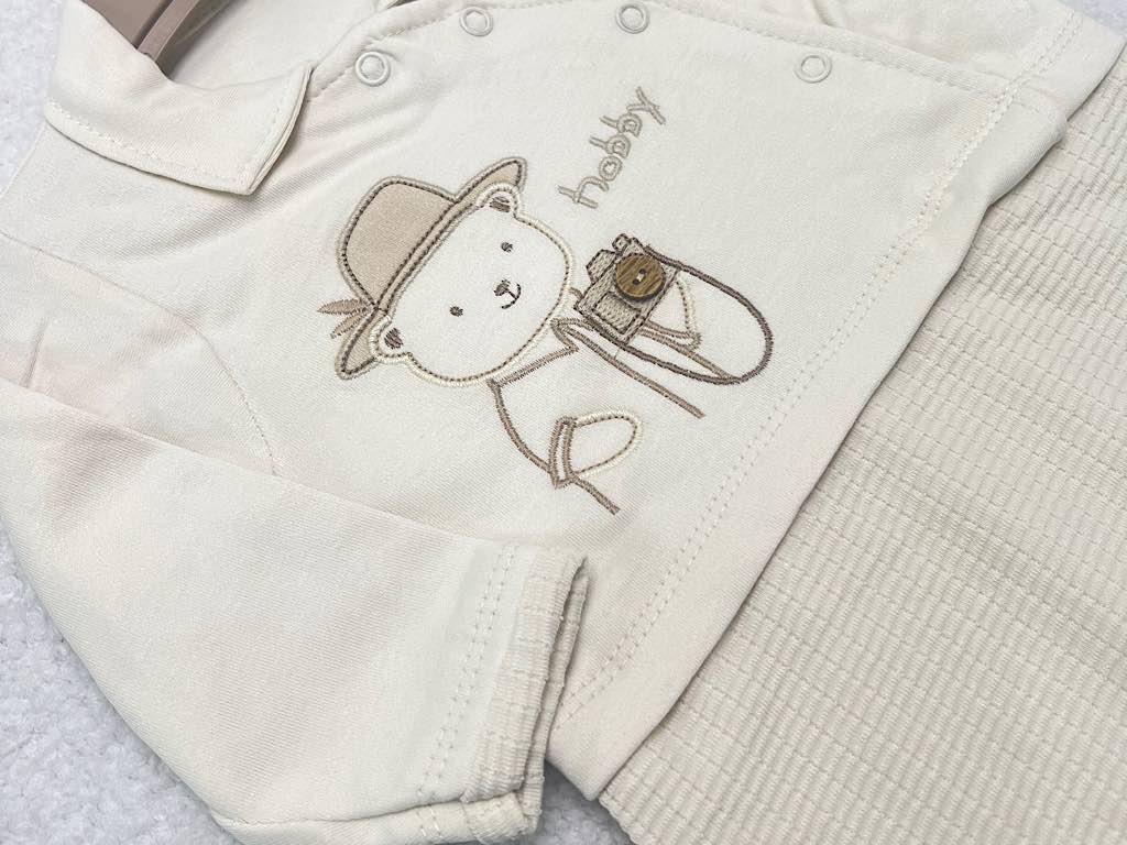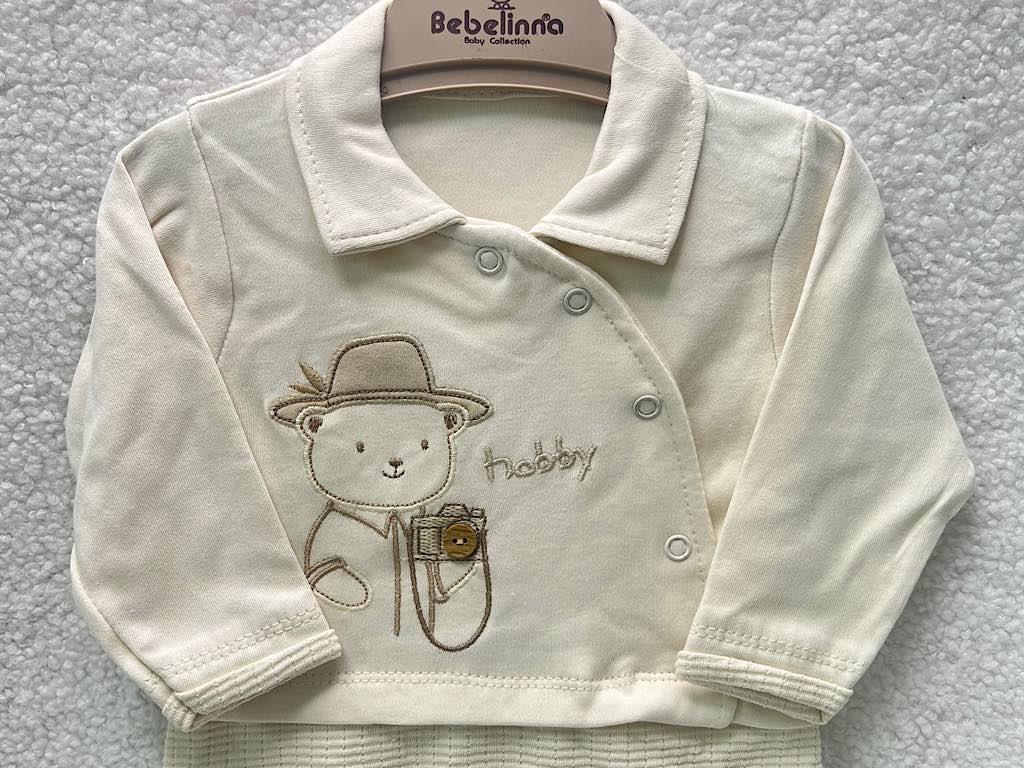 #سرهمی جوراب دار نوزادی پسرانه بیسکویتی کرم طرح خرس شاد بب لینا BEBELINNA