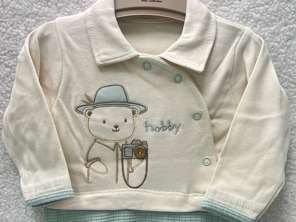 #سرهمی جوراب دار نوزادی پسرانه بیسکویتی سبز آبی طرح خرس شاد بب لینا BEBELINNA