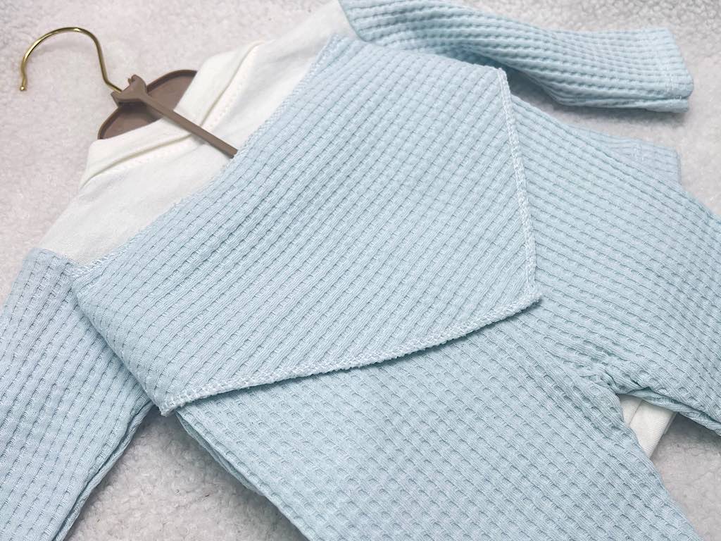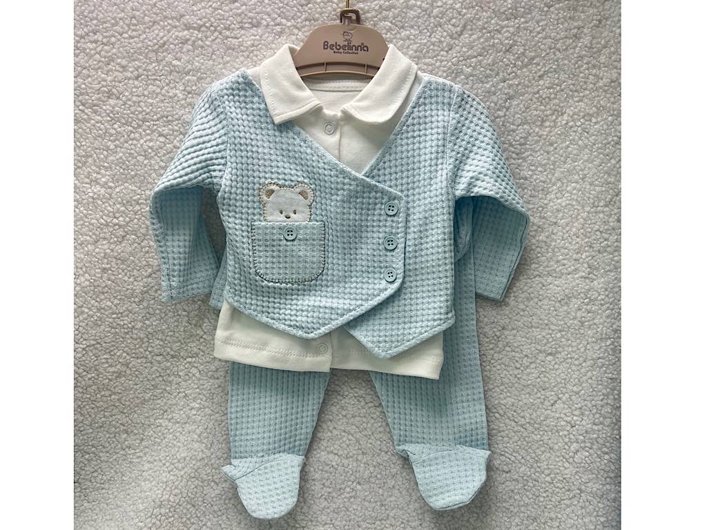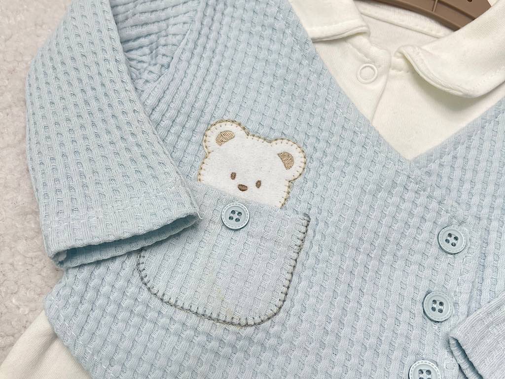 ست بیمارستانی مجلسی 5 تکه طرح جلیقه آبی با طرح تدی ب ب لینا bebelinna