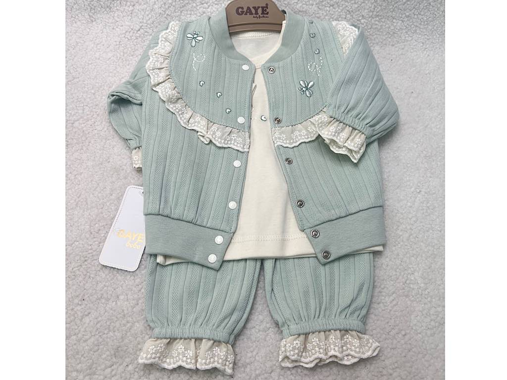 ست 3 تکه نوزادی دخترانه طرح زنبور و گل G.a.y.e ترکیه