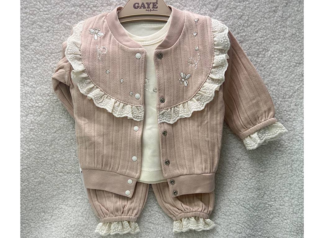 ست 3 تکه نوزادی دخترانه طرح زنبور و گل G.a.y.e ترکیه
