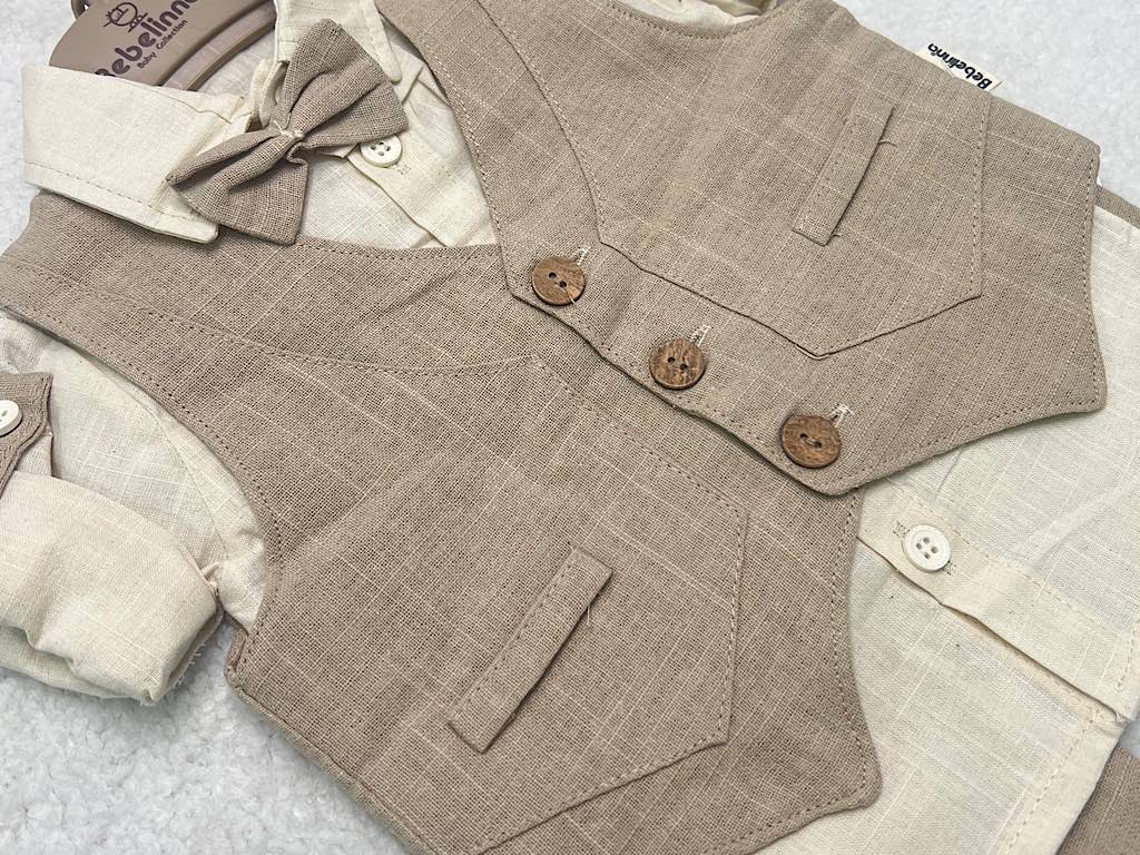 ست مجلسی شومیز و شلوار و جلیقه با پاپیون نوزادی bebelinna ترکیه