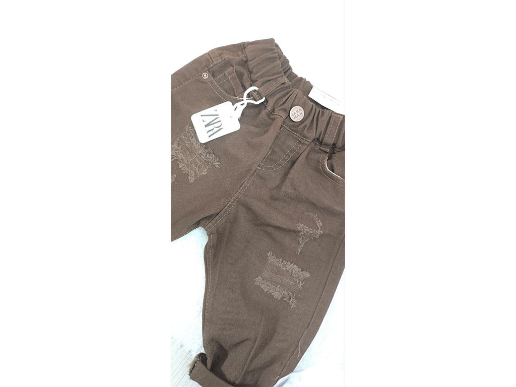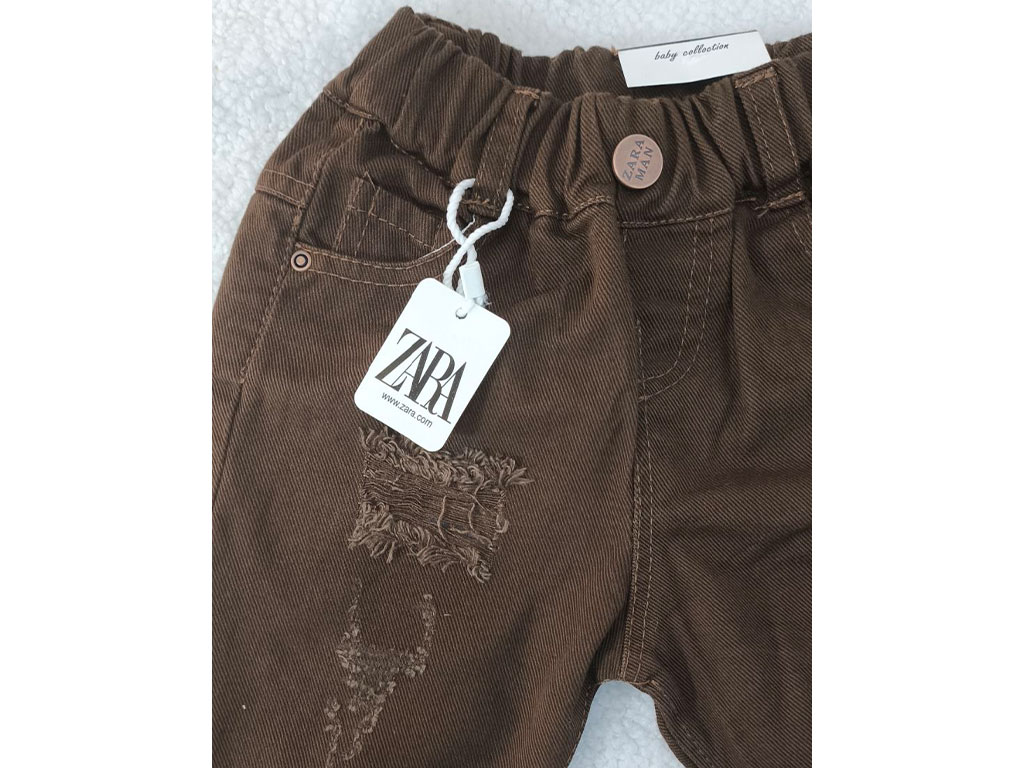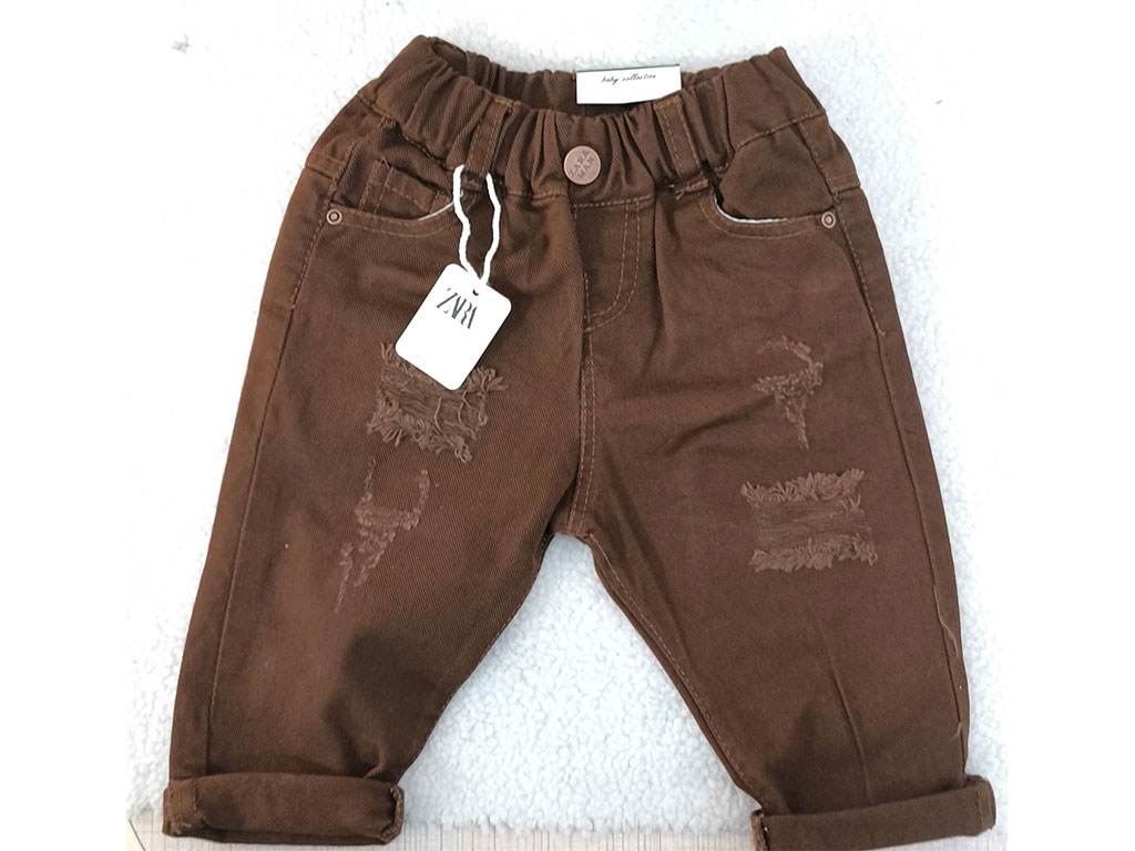 شلوار کتان زاپ دار نوزاد و کودک رنگ قهوه ای تیره