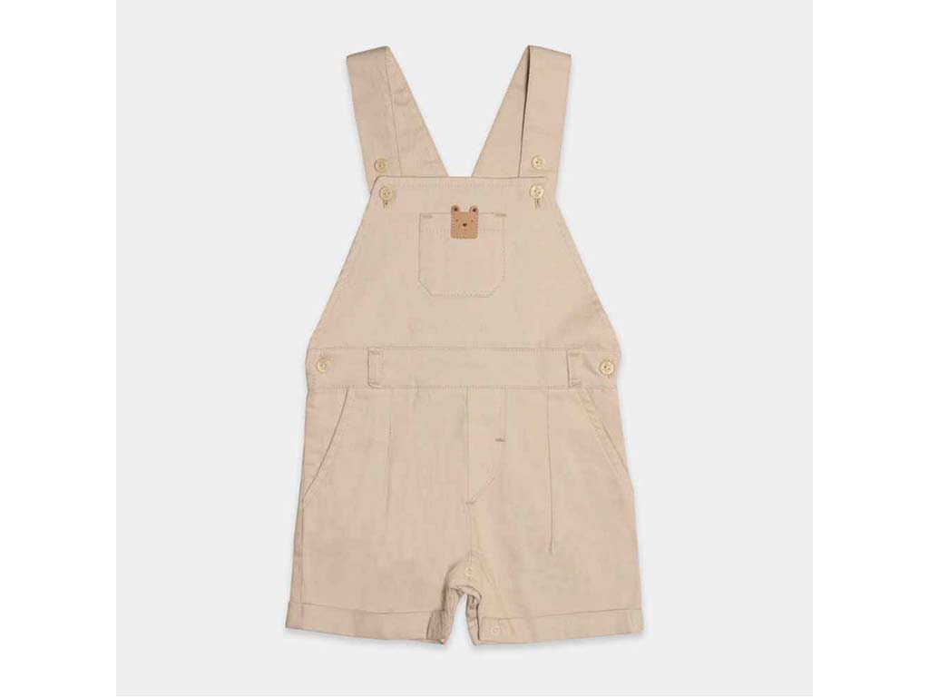 شلوارک کتان پیشبندی جیب دار کرم رنگ نوزادی با طرح تدی و مدل orman پاپو papo