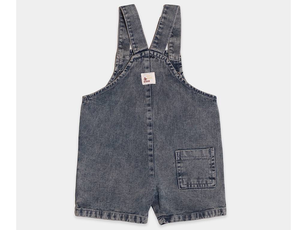 شلوارک جین پیشبندی جیب دار نوزادی رنگ آبی تیره طرح mahan پاپو papo