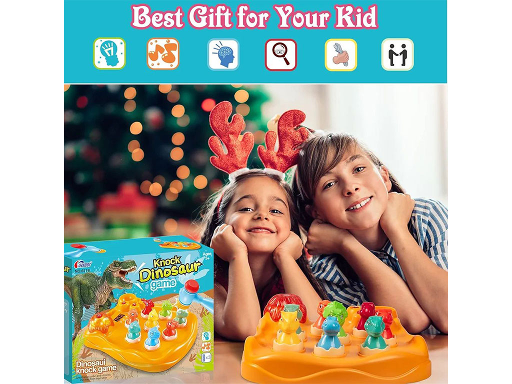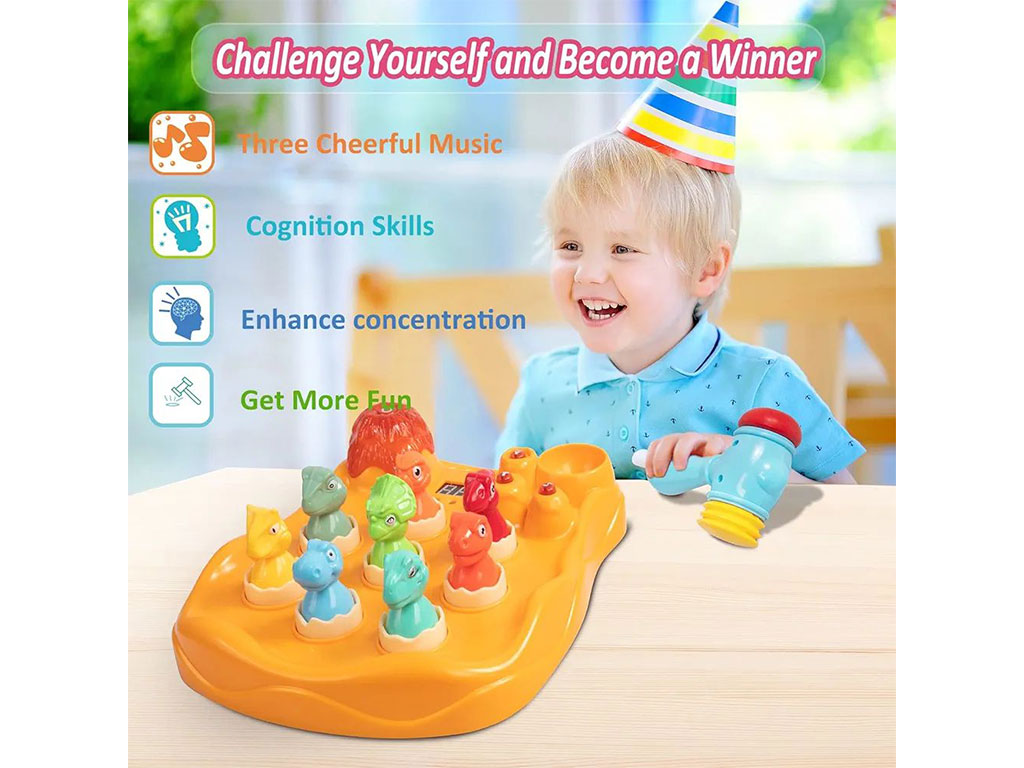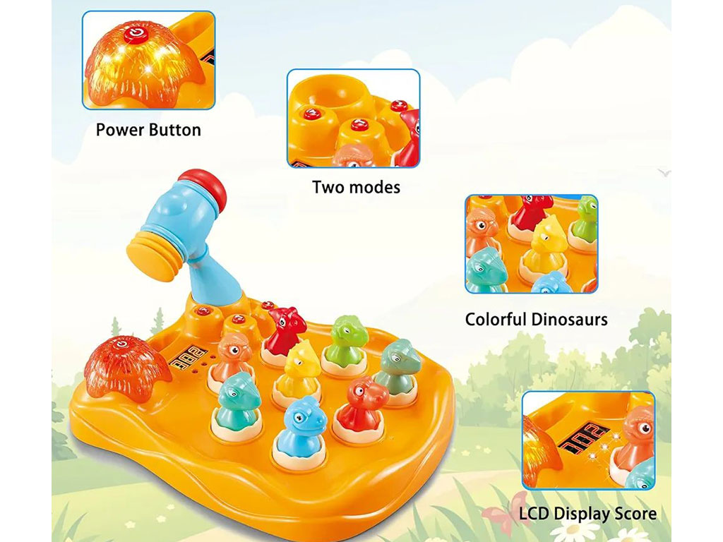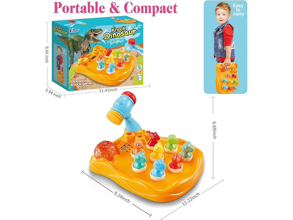 بازی چکشی تمرکزی و هوش دایناسور اسباب بازی چراغدار