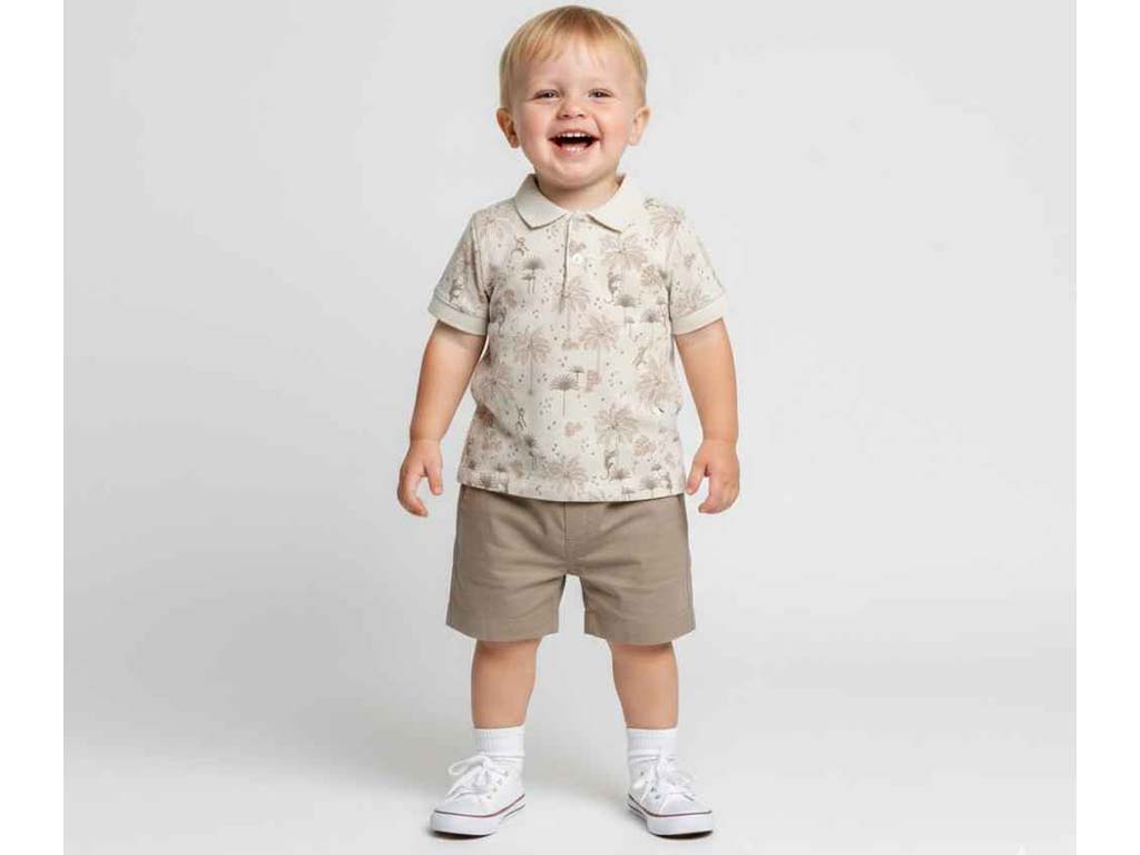 تیشرت جودون و شلوارک کتان پسرانه طرح نخل و میمون مدل karoun پاپو papo