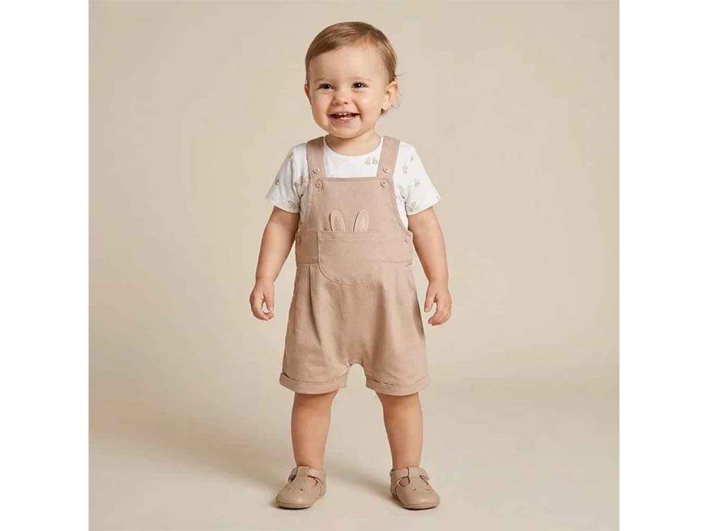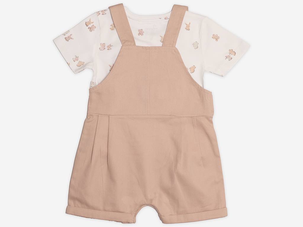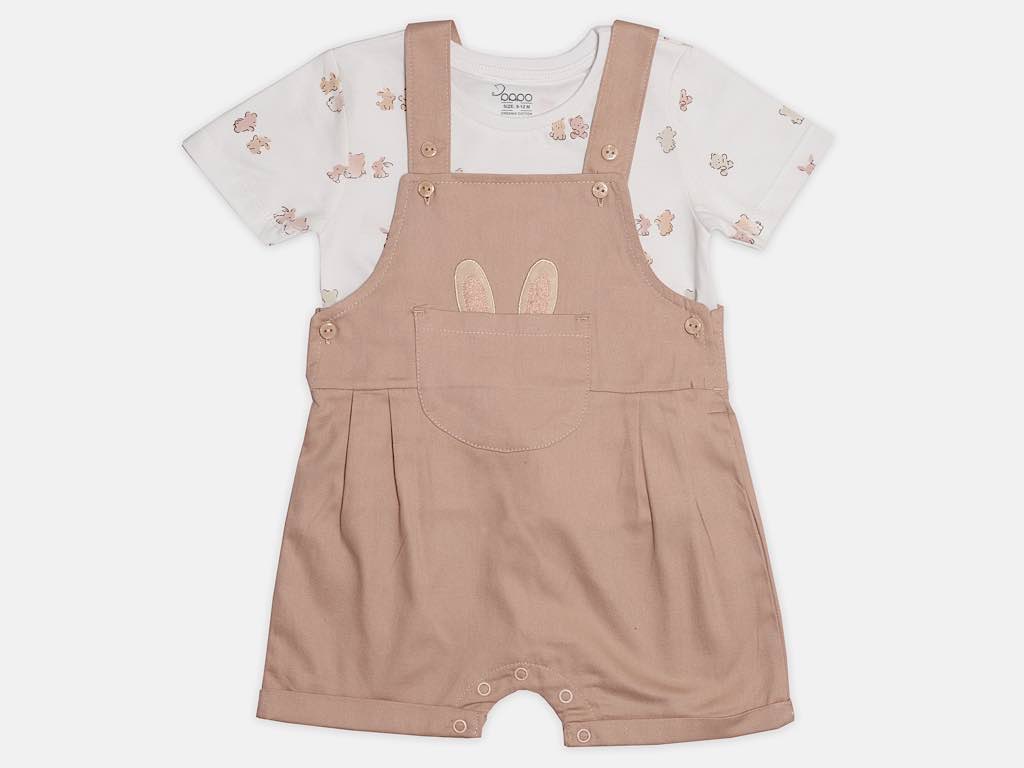 تیشرت و شلوارک پیشبندی نوزادی دخترانه رنگ صورتی چرک طرح خرگوش مدل SEPIDEH پاپو papo