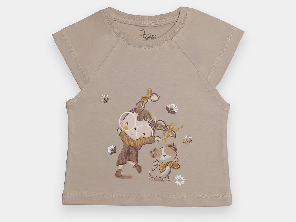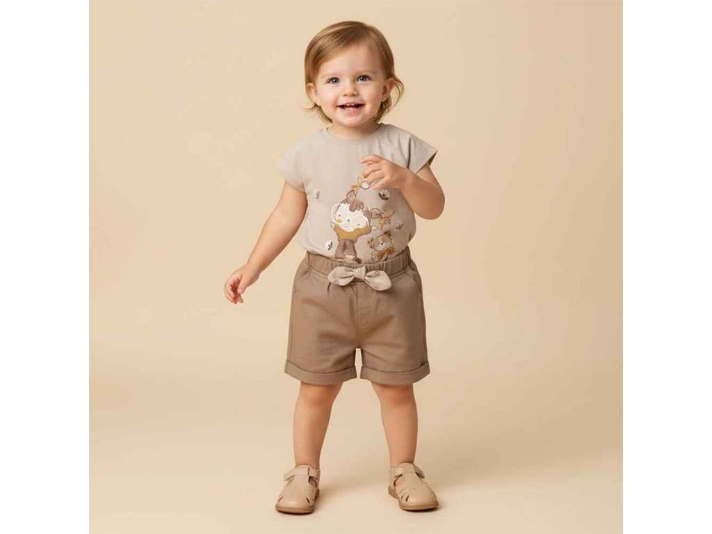 تیشرت و شلوارک کتان دخترانه طرح دختر و گربه مدل SHABNAM پاپو papo