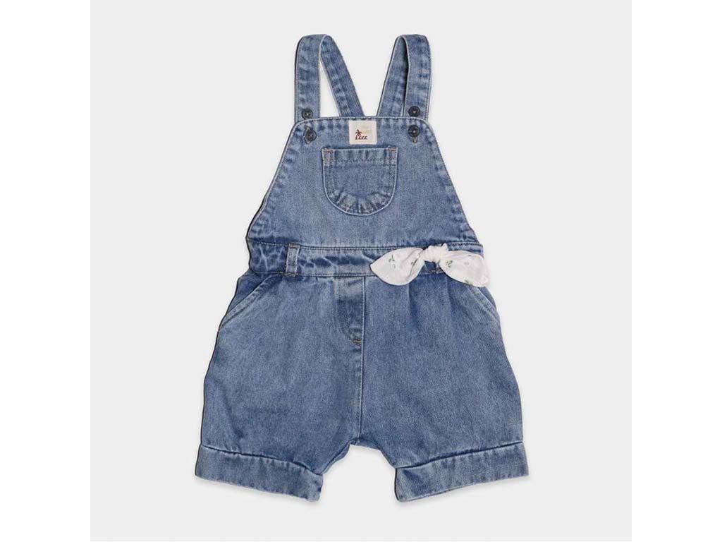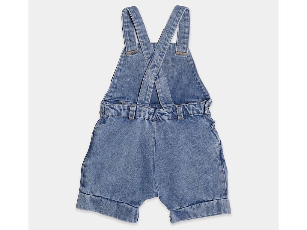 شلوارک جین پیشبندی جیب دار نوزادی آبی تیره دخترانه طرح GOLNAZ پاپو papo