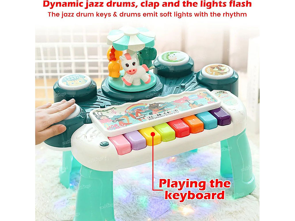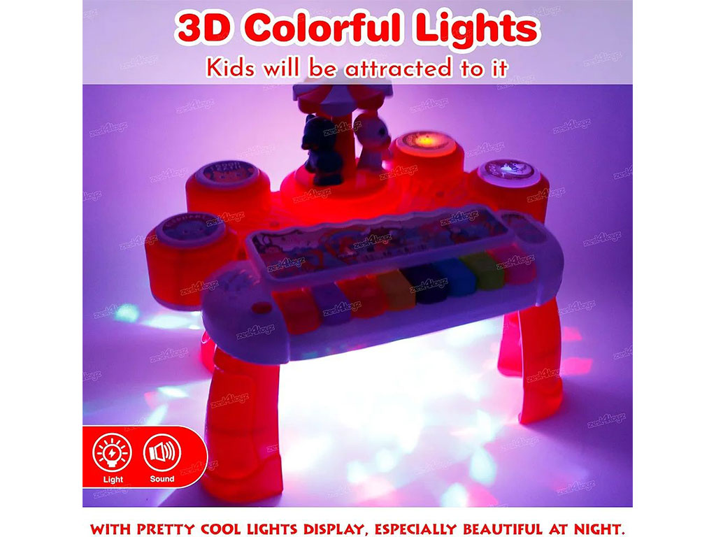 با استفاده از این اسباب بازی کودک مهارت های شنیداری خود را تقویت می کند. چراغ های پیانو و رقص نور گردان و رنگ های شادی که در بدنه اسباب بازی به کار رفته قوه بینایی او را نیز تحریک می نماید.