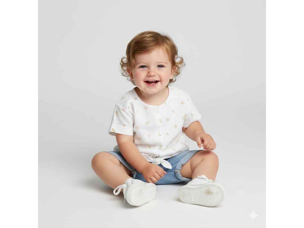 شومیز و شلوارک جین دخترانه طرح گل مدل ZHILA پاپو papo