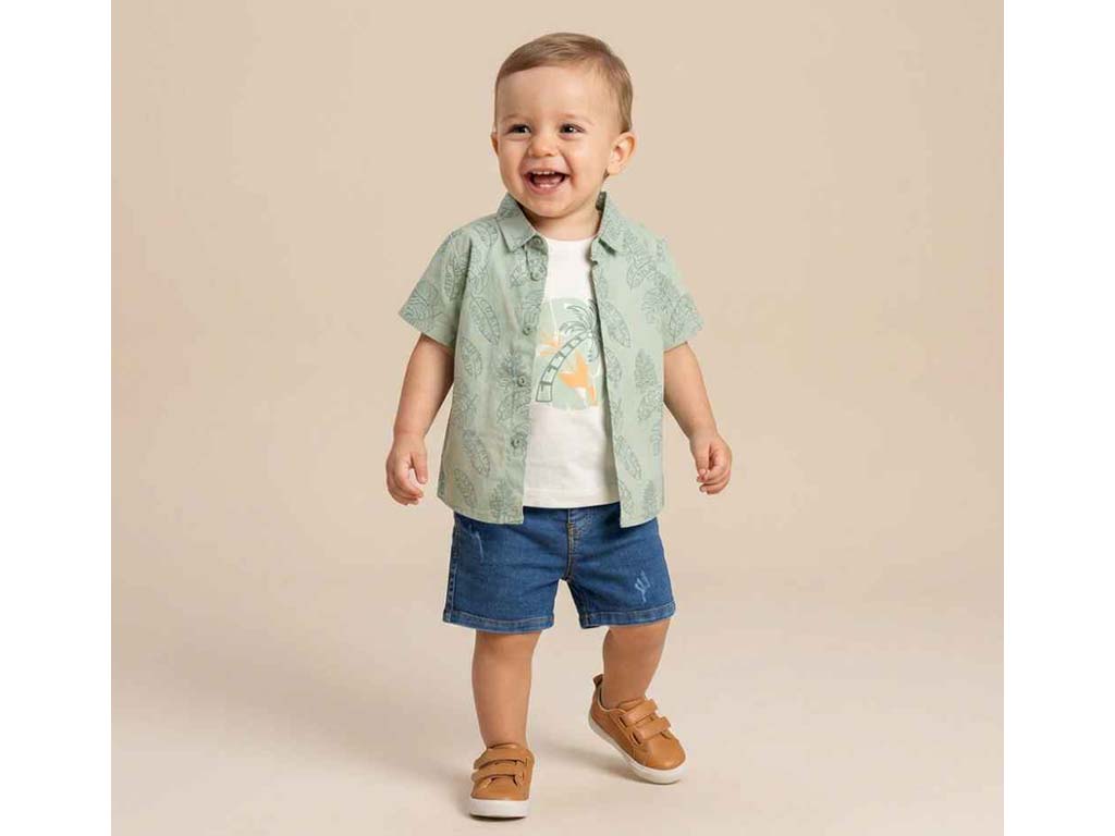 ست تیشرت، شومیز و شلوارک جین نوزادی پسرانه طرح هاوایی مدل Sahand پاپو papo