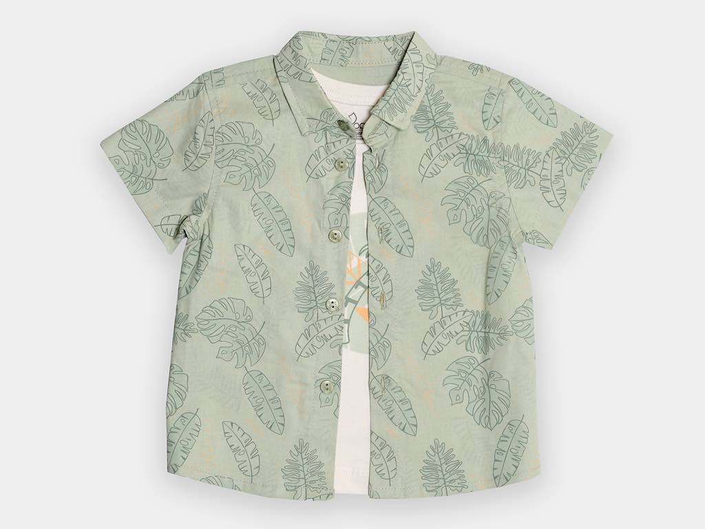 - شومیز آستین کوتاه، سبز رنگ با طرح هاوایی