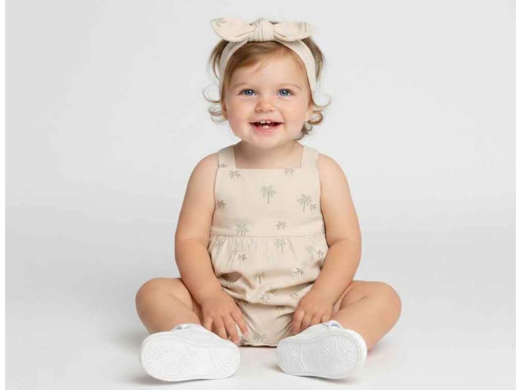 رامپر مجلسی با هدبند نوزادی دخترانه رنگ کرم روشن با طرح نخل مدل Darya پاپو papo