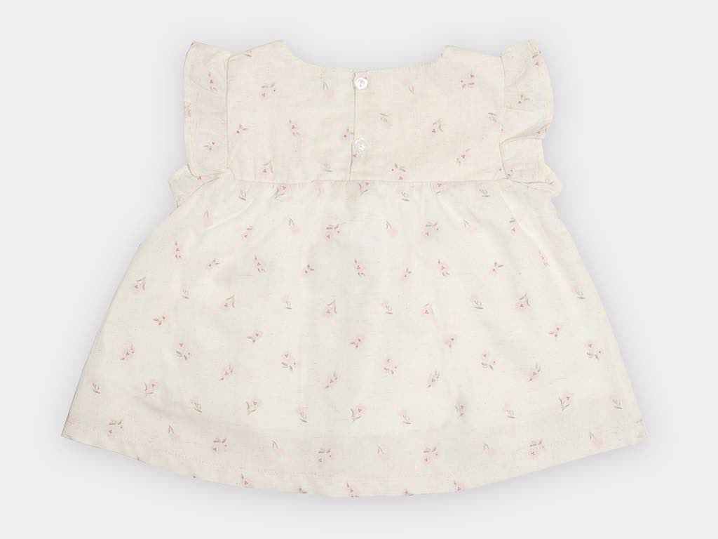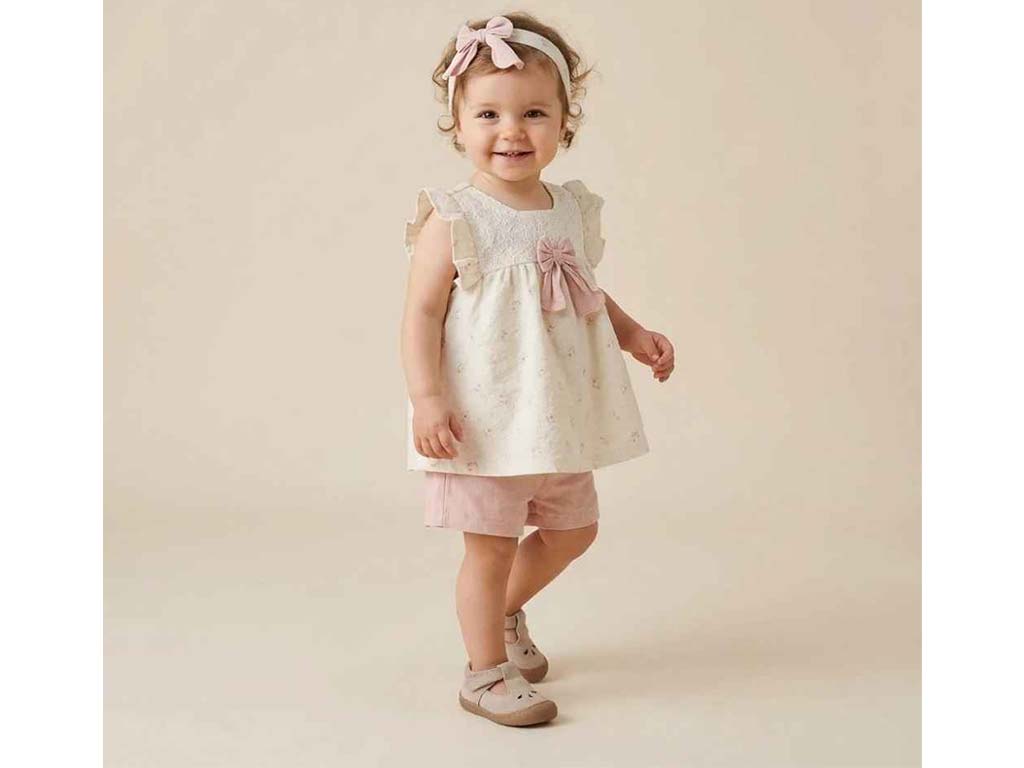 تونیک و شلوارک و هدبند کرم و کالباسی دخترانه طرح گل مدل termeh پاپو papo