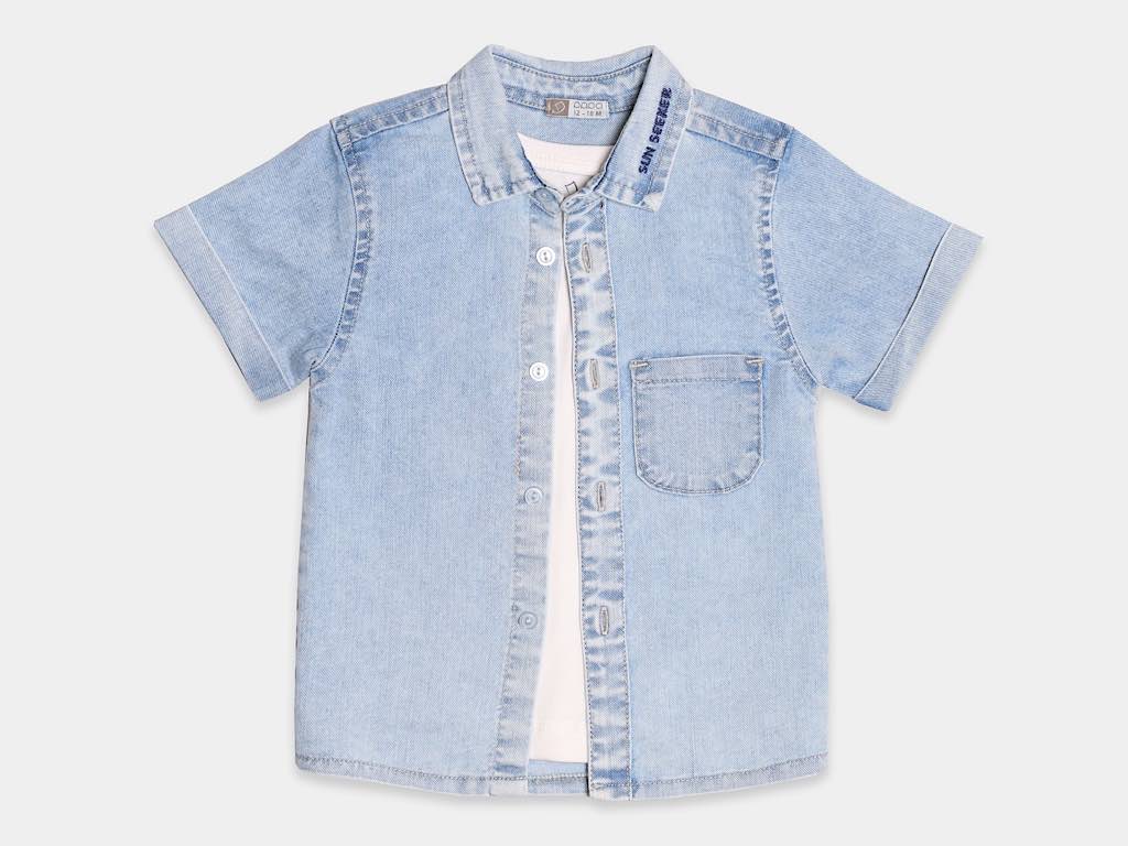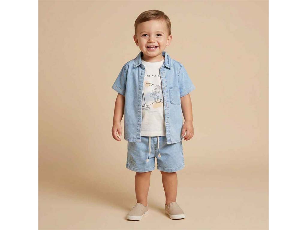 ست سه تکه تیشرت، شومیز و شلوارک جین نوزادی پسرانه مدل mahbod پاپو papo