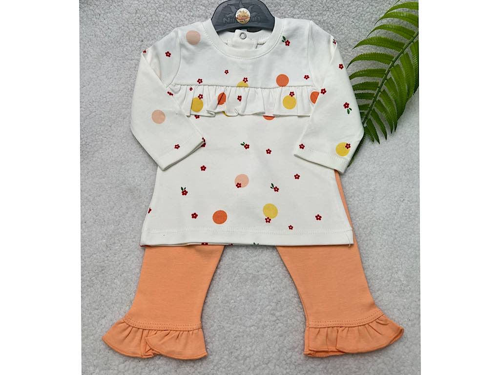 ست بلوز و شلوار شیری و گلبهی طرح گل و خال نی نی سان nini sun