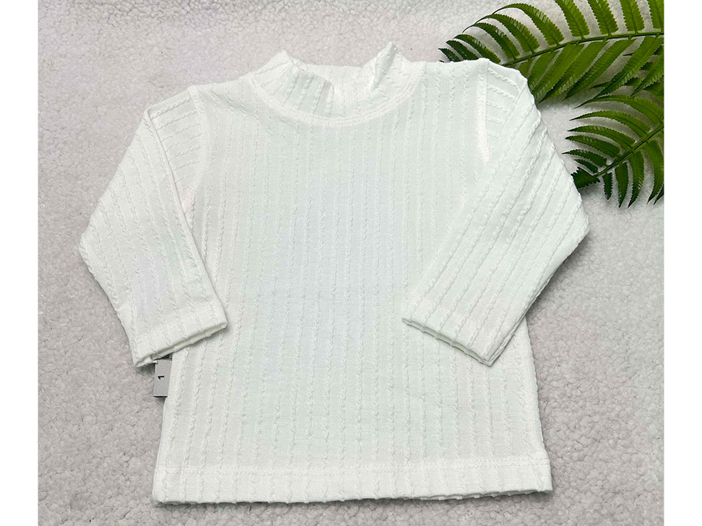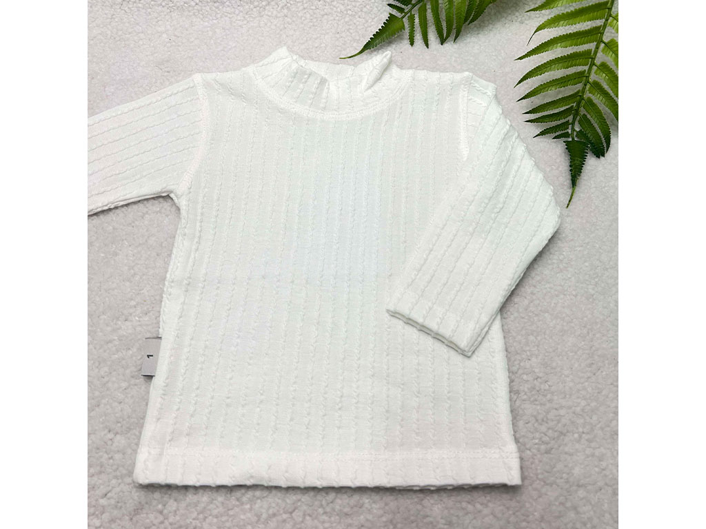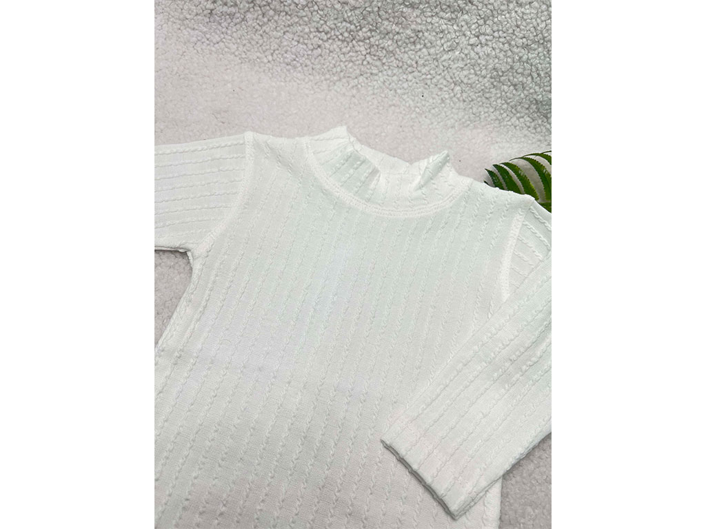 بلوز زیرسارافونی دخترانه مدل یقه 5 سانتی سفید رنگ طرح طنابی