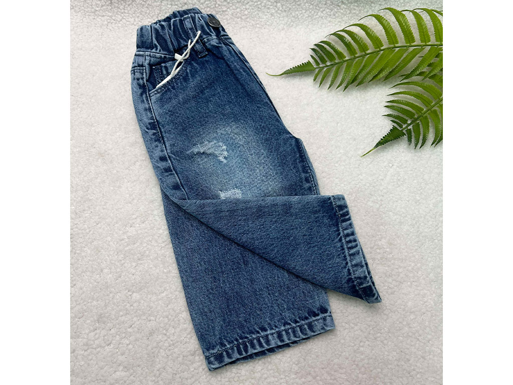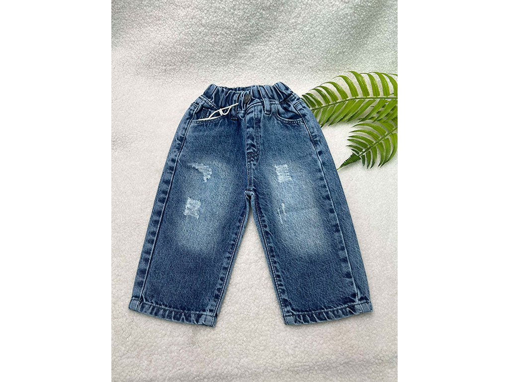 شلوار جین کمرکش راسته رنگ آبی زاپ دار