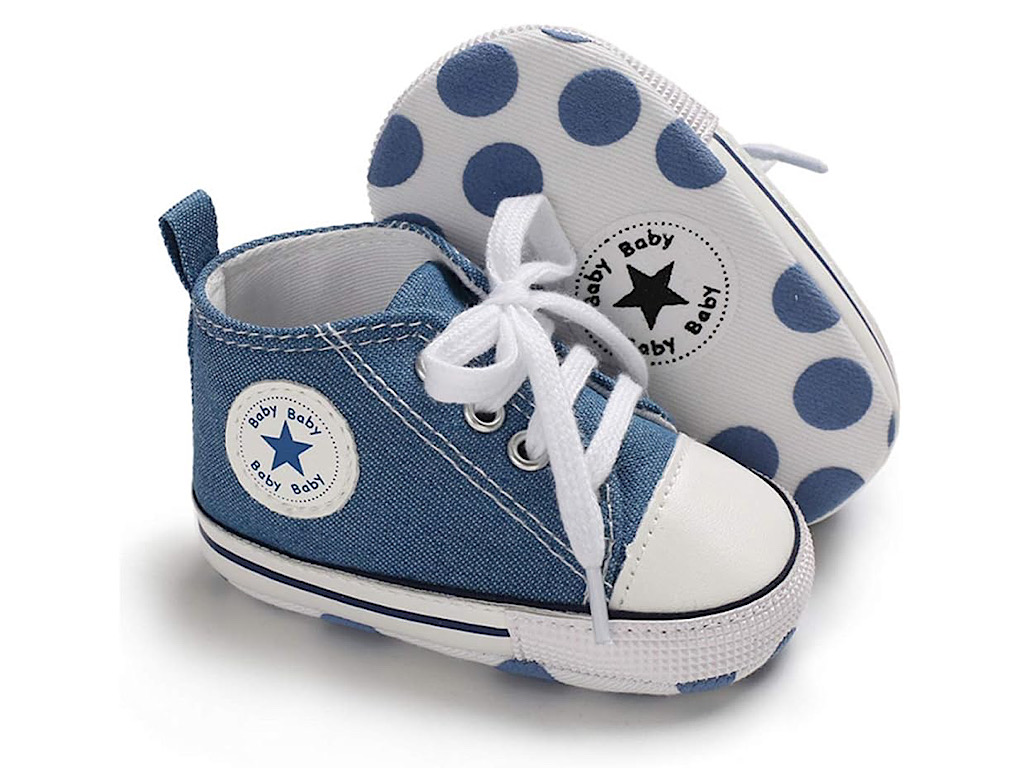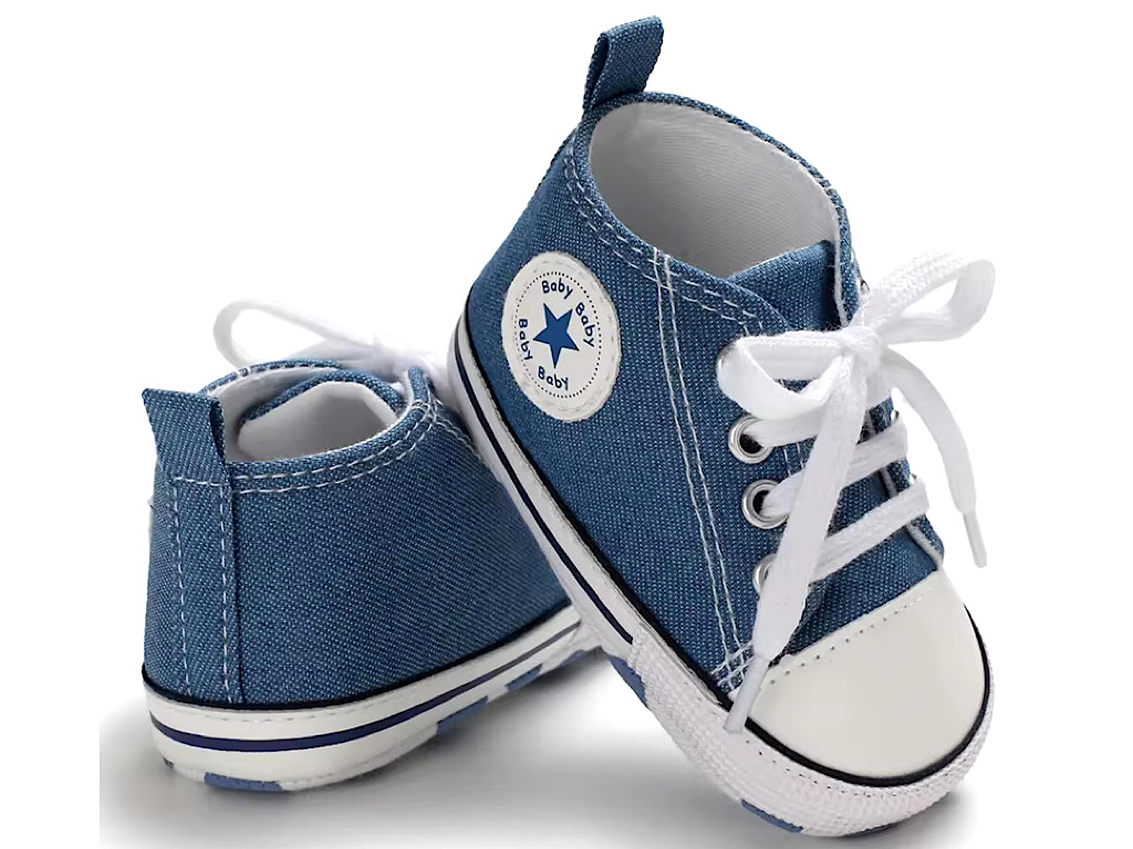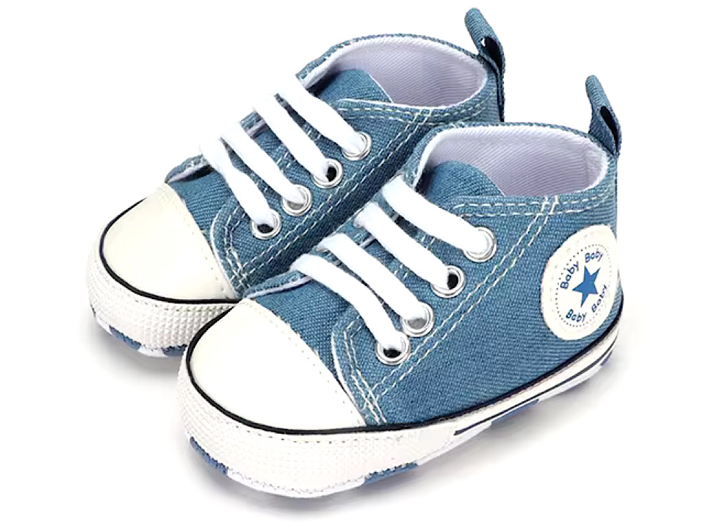 پاپوش استپ دار نوزادی پسرانه با طرح آل استار Baby Baby دارای سه سایز 0-6 و 6-12 و 12-18 ماه می باشد.جنس رویه این محصول ترکیب پارچه به رنگ ارتشی و چرم مصنوعی در قسمت نوک پاپوش بوده و توسط چهار ردیف بند به راحتی پای دلبندان می شود که بسیار شیک و بی نظیر است.
