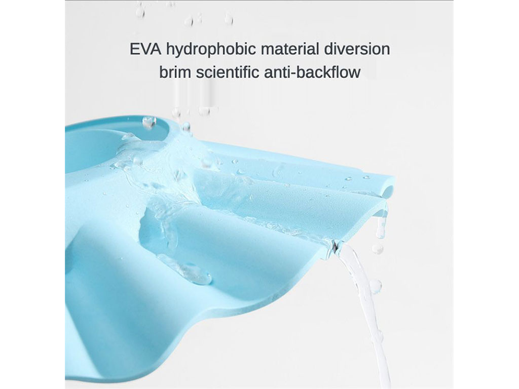 در کناره های کلاه حمام فرو و برآمدگی هایی وجود دارد که اجازه ماندن آب روی کلاه را نمی دهد و اب به راحتی از روی کلاه خارج می شود. جنس کلاه فومی است و کاملا سبک می باشد و هیچ وزن اضافه ای برای کودک ندارد. در پشت کلاه نیز چهار دکمه فشاری تعبیه شده است که می توانید اندازه کلاه را برای سر کودک دلبندتان به درستی تنظیم کنید.