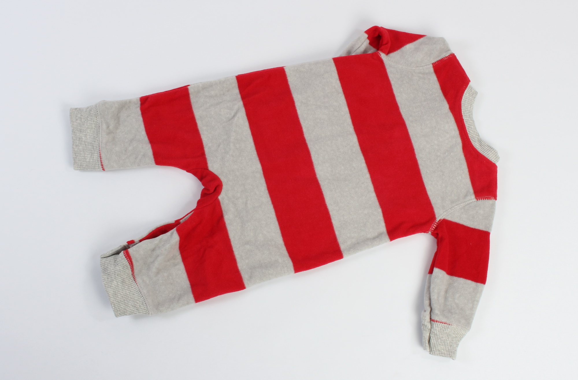 #سرهمی نوزادی پسرانه که جنس ان کرکی می باشد و طرح راه راه خاکستری و قرمز دارد.