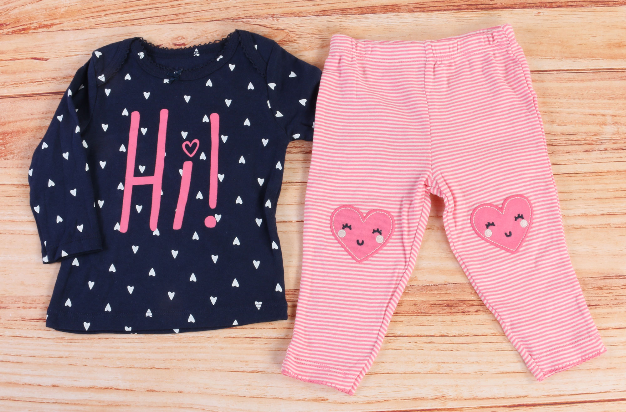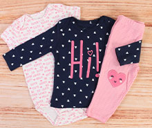 سه تکه کارترز carter's، ست سه تکه نوزادی دخترانه که شامل بادی، بلوز و شلوار می باشد. بادی به رنگ سفید است و پارچه لباس دارای طرح نوشته های انگلیسی صورتی و قلب های ریز می باشد. بادی آستین کوتاه و زیردکمه دار بوده و یقه آن مدل فرشته است. بلوز نیز سرمه ای است و دارای طرح قلب های سفید و نوشته انگلیسی چاپی Hi در اندازه بزرگ و به رنگ صورتی می باشد که ترکیب این رنگ ها و طرح ها جذابیت خاصی به این لباس نوزادی بخشیده است. بلوز آستین بلند است و مدل یقه آن مدل فرشته می باشد. شلوار این ست چند تکه نیز راه راه سفید و صورتی بوده و کمر آن کش است. تکه دوزی طرح دو قلب صورتی بر روی زانوی شلوار بر زیبایی این ست کارترز افزوده است. جنس این چند تکه کارترز 100 درصد کتان (نخ پنبه) می باشد و کودک دلبندتان در آن احساس خوب و راحتی خواهد داشت و این ست دخترانه گزینه مناسبی برای سیسمونی کودک دلبند شما می باشد.