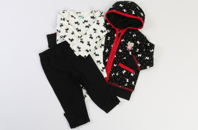 #ست سه تکه ی نوزادی دخترانه ی کارترز که شامل بادی سویشرت و شلوار می باشد.