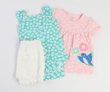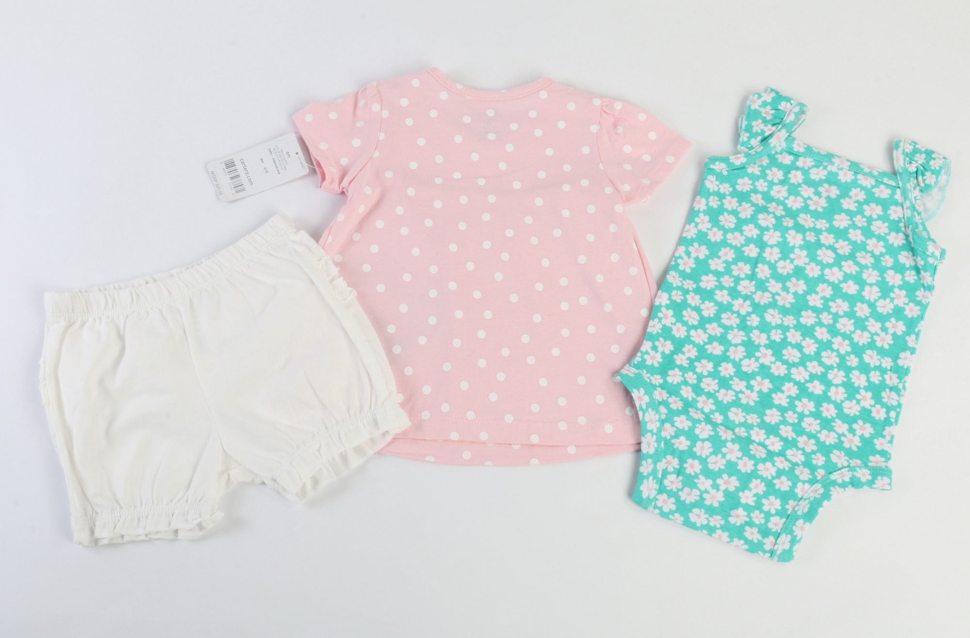 #سه تکه کارترز carter's، ست سه تکه نوزادی دخترانه که شامل پیراهن، بادی و شلوارک می باشد.