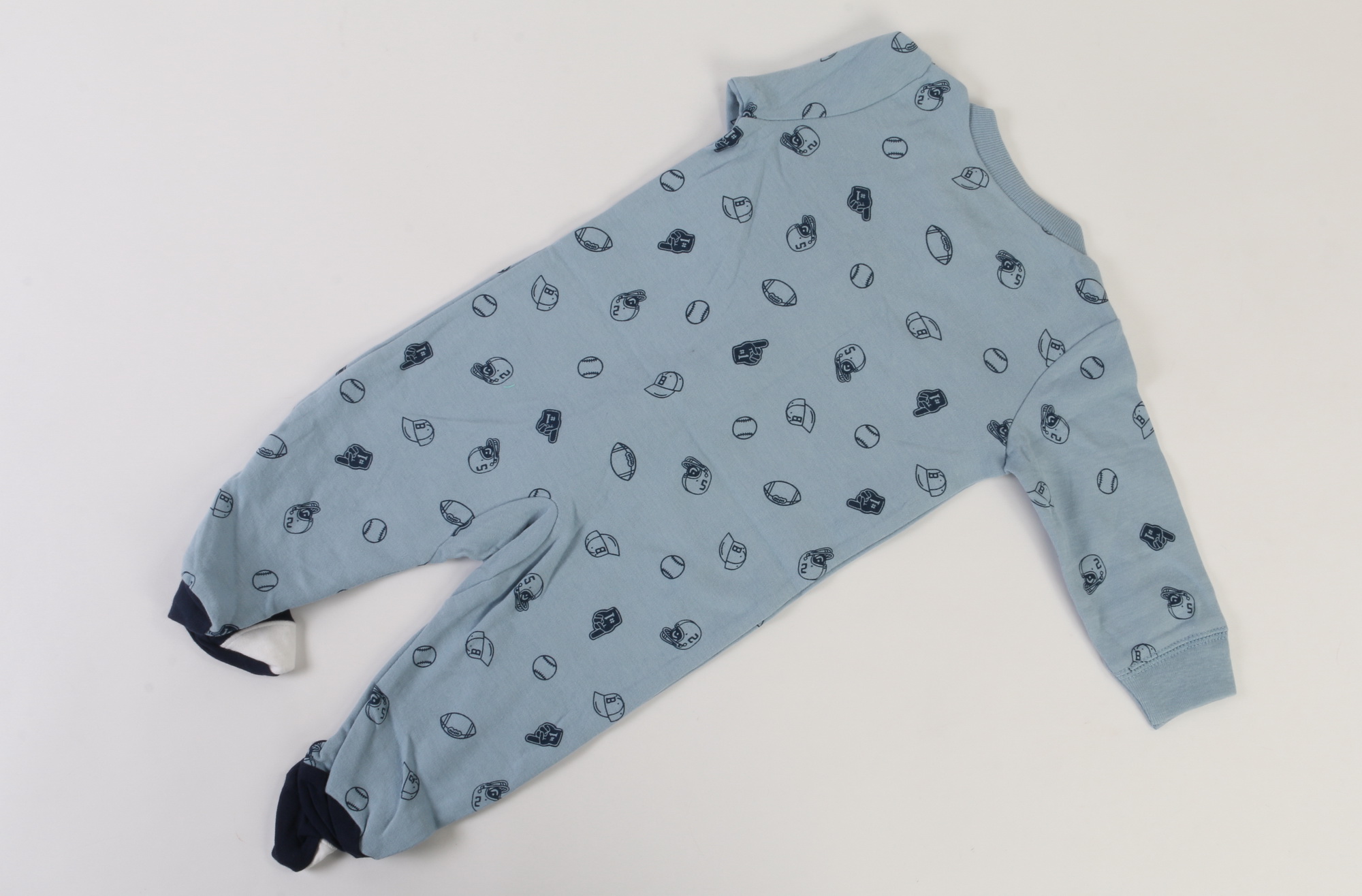 #سرهمی کارترز نوزادی پسرانه ابی رنگ با طرح ورزشی که نخ پنبه و مناسب دلبند شما می باشد.