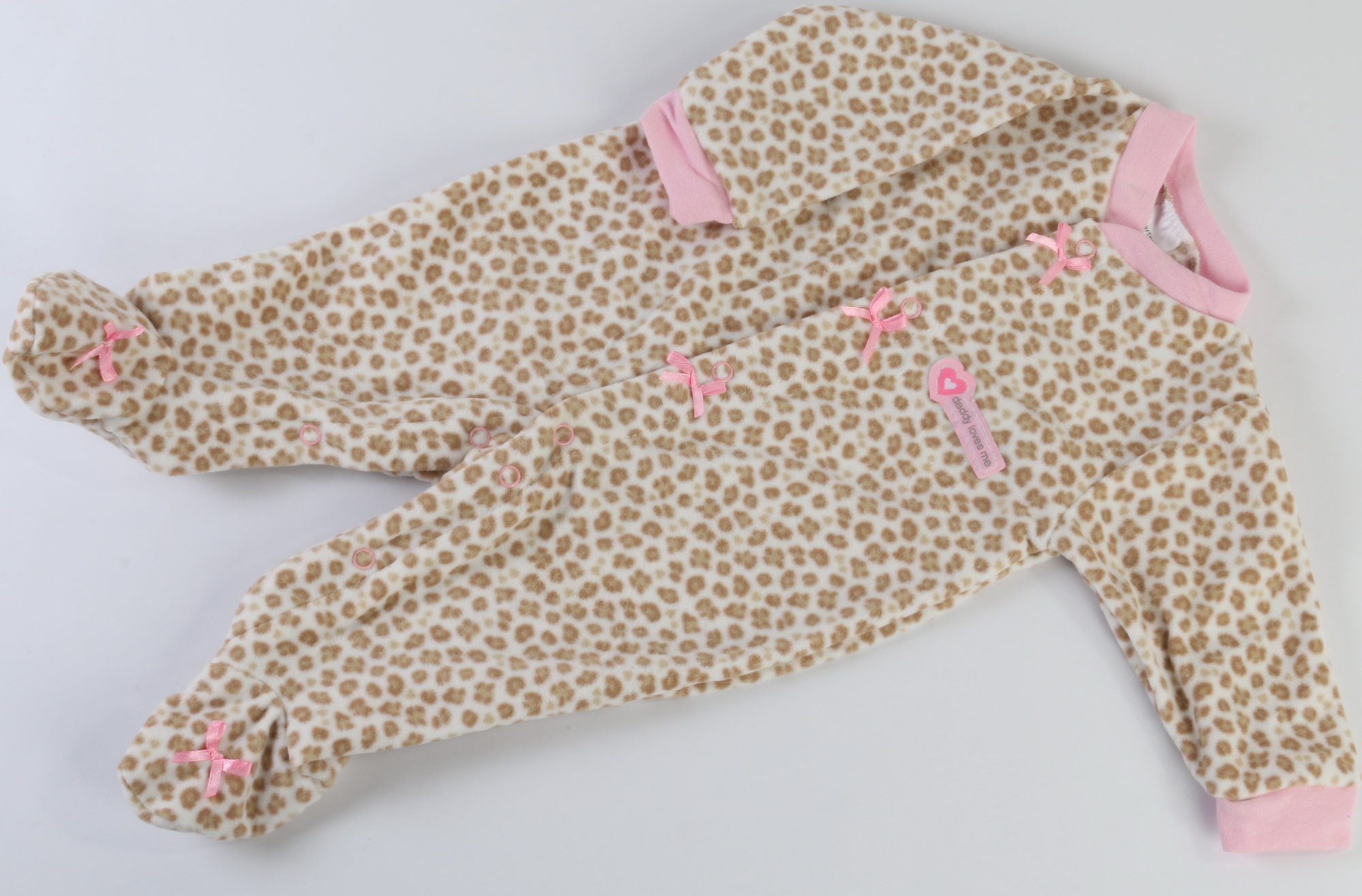 #سرهمی جورابدار نوزادی دخترانه که جنس ان کرکی بوده و به رنگ شیری با طرح پلنگی قهوه ای می باشد.